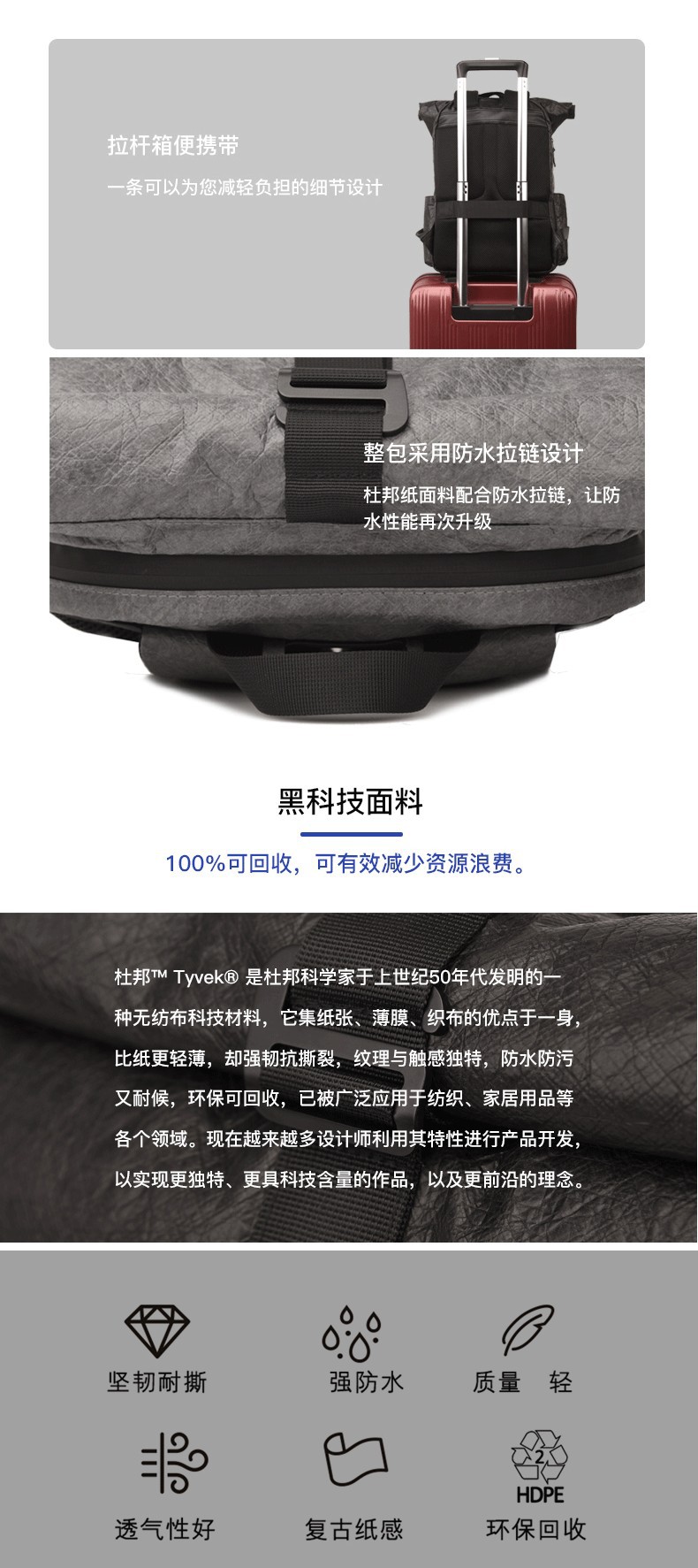 재고 2024 봄 새로운 유럽과 미국 스타일의 로프 버클 남성 여행 가방 단색 듀폰 종이 배낭스토어 가기