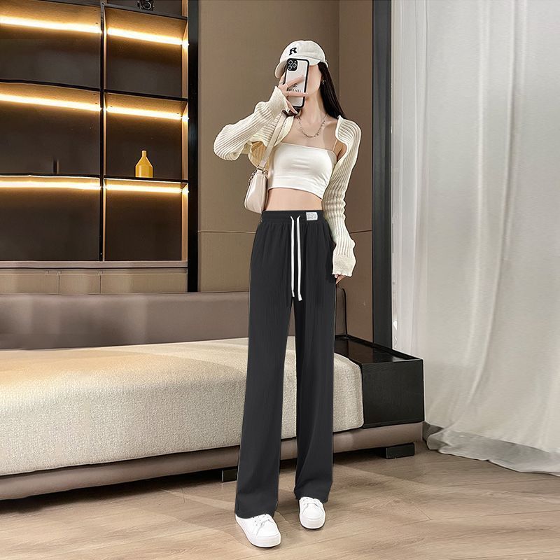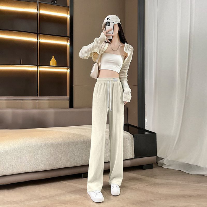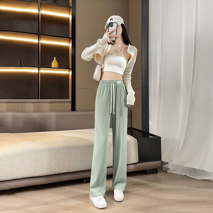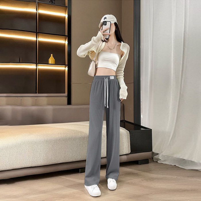 5 컬러 5 사이즈 2024 아이스 실크 좁은 넓은 다리 바지 여성 여름 얇은 새로운 높은 허리 투약 스트레이트 올매치 캐주얼 바지스토어 가기
