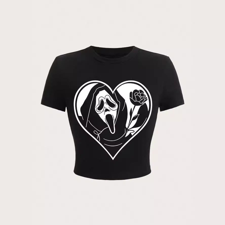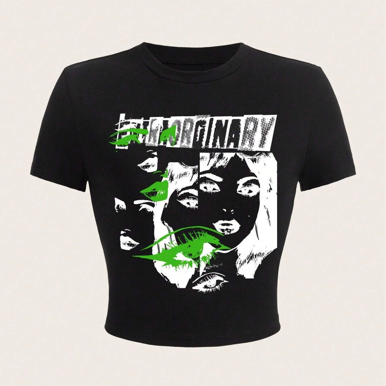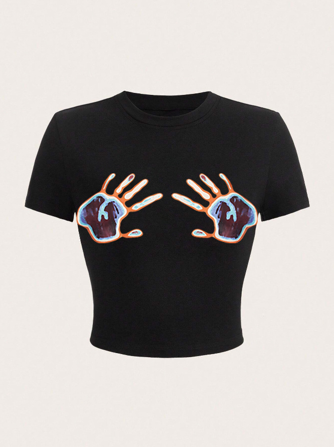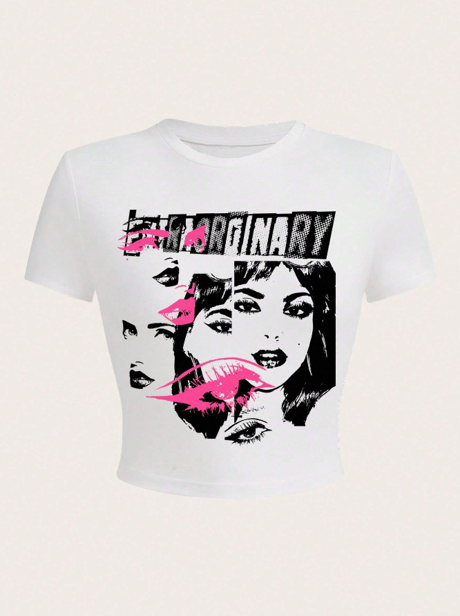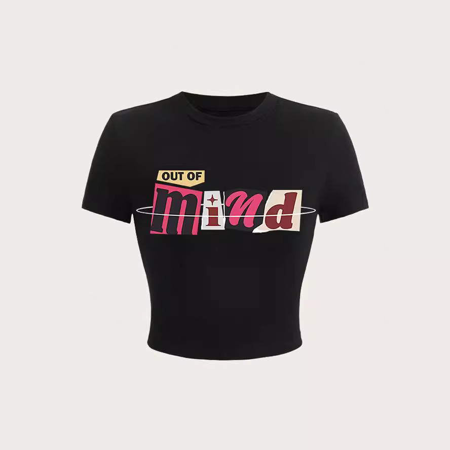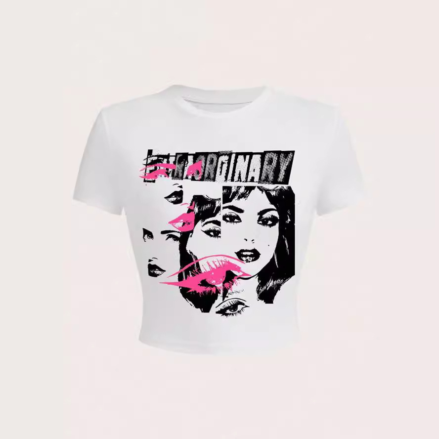 여성용 캐주얼 편안한 슬림 라운드 넥 타이트 프린트 짧은 소매 티셔츠 짧은 소매 짧은 스타일