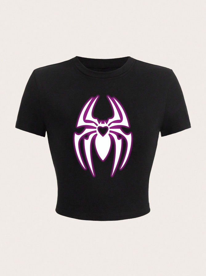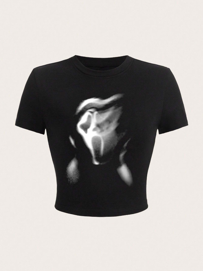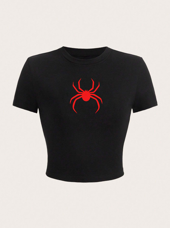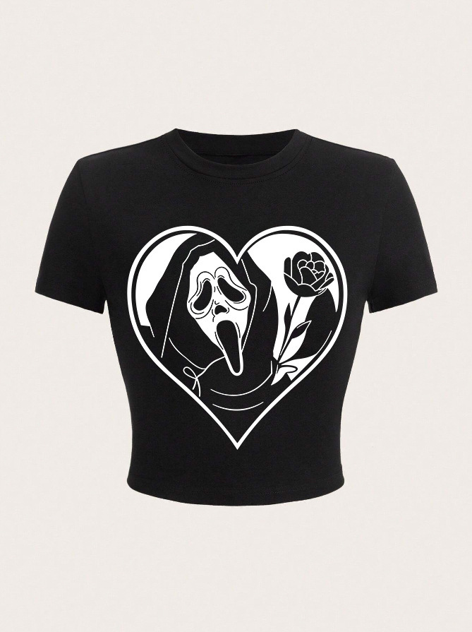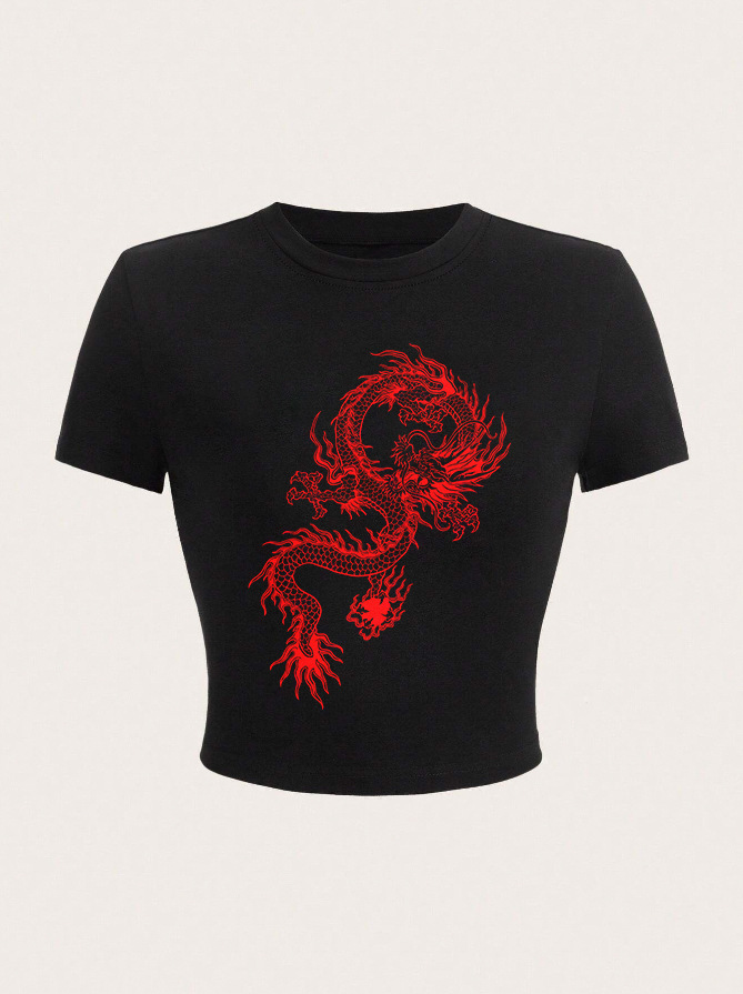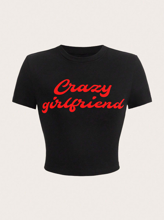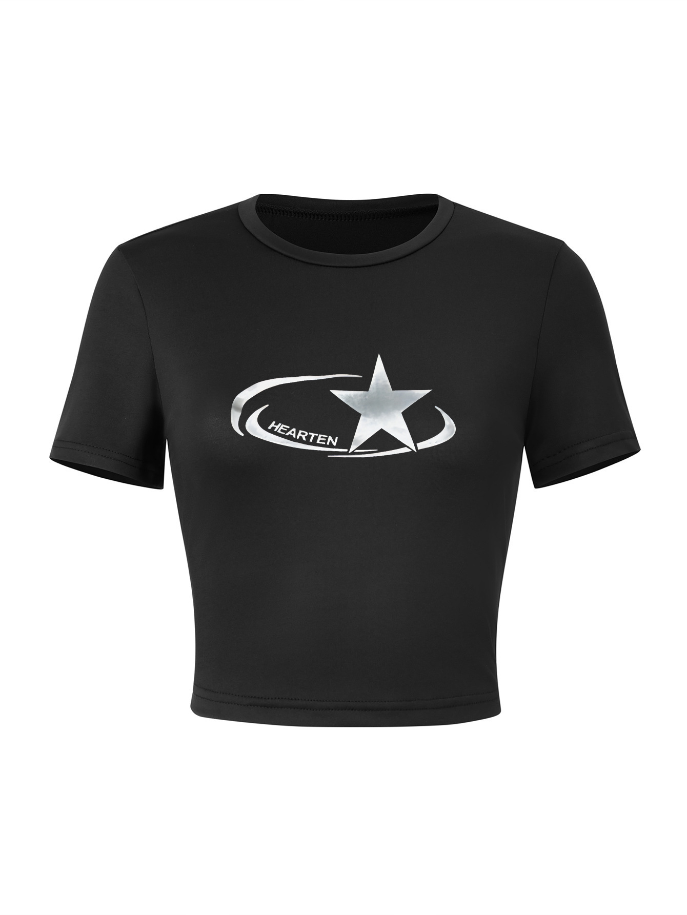 여성용 캐주얼 편안한 슬림 라운드 넥 타이트 프린트 짧은 소매 티셔츠 짧은 소매 짧은 스타일