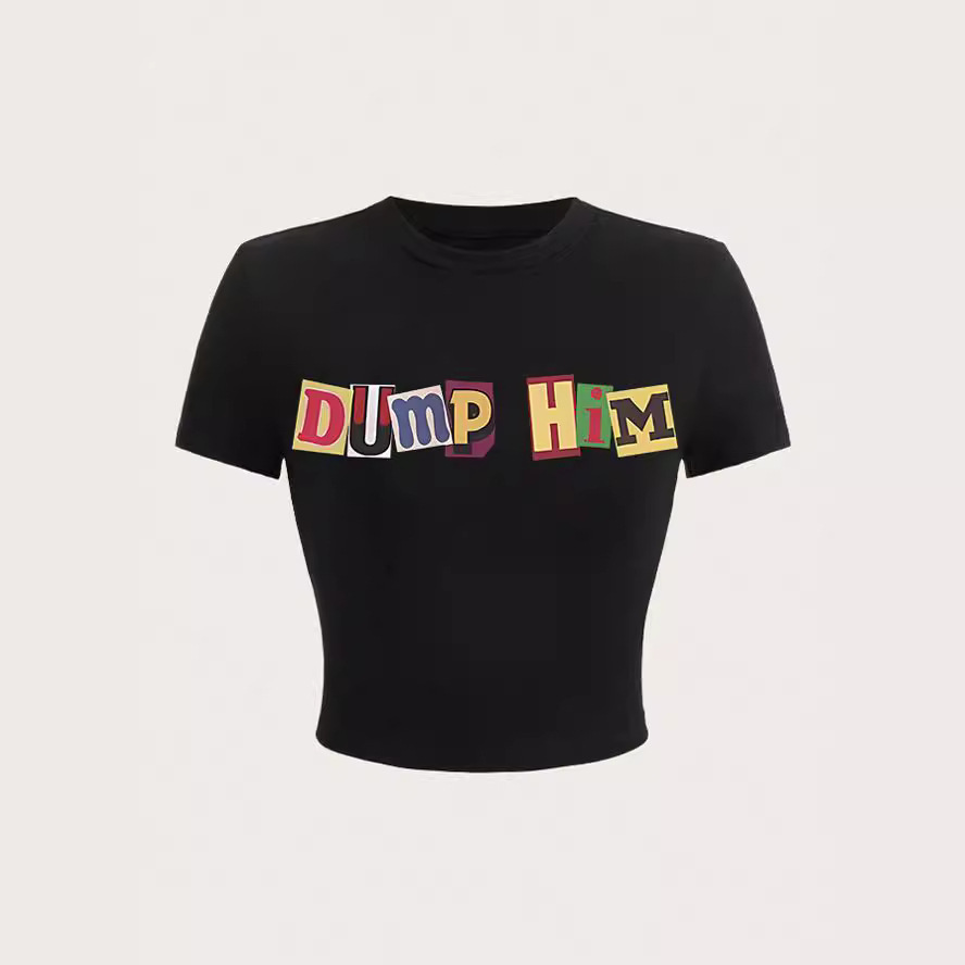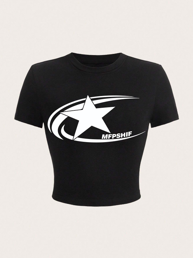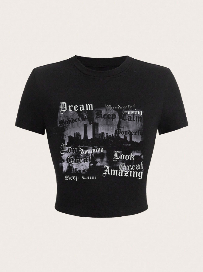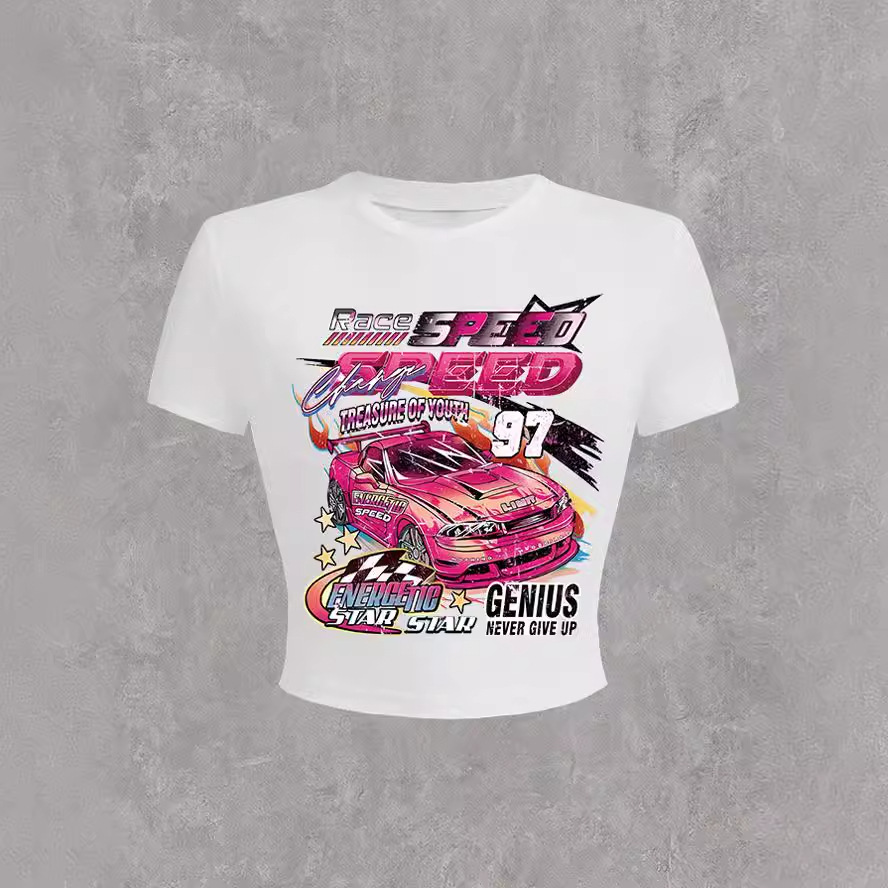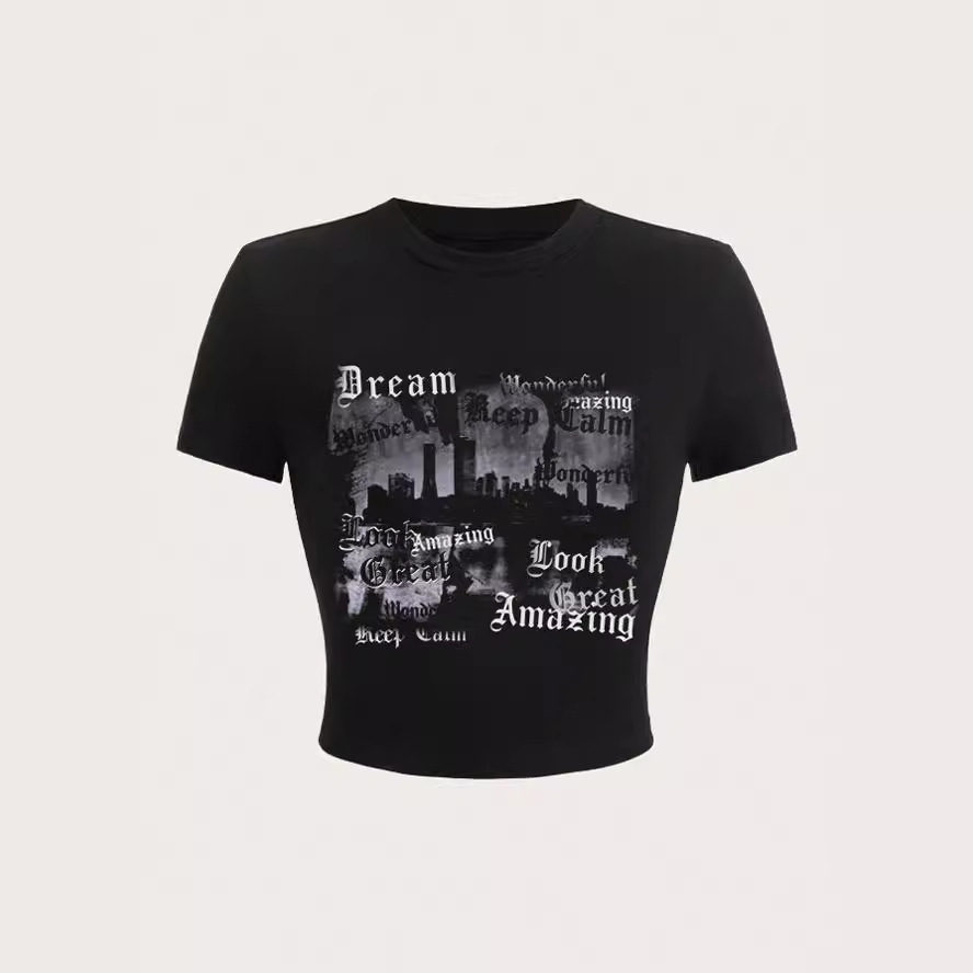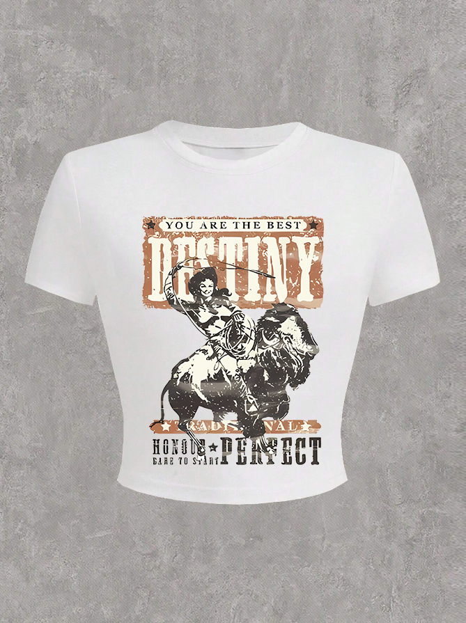 여성용 캐주얼 편안한 슬림 라운드 넥 타이트 프린트 짧은 소매 티셔츠 짧은 소매 짧은 스타일스토어 가기