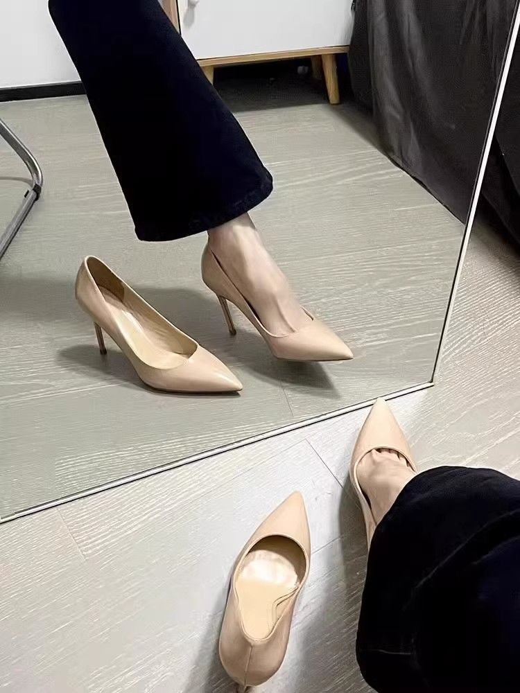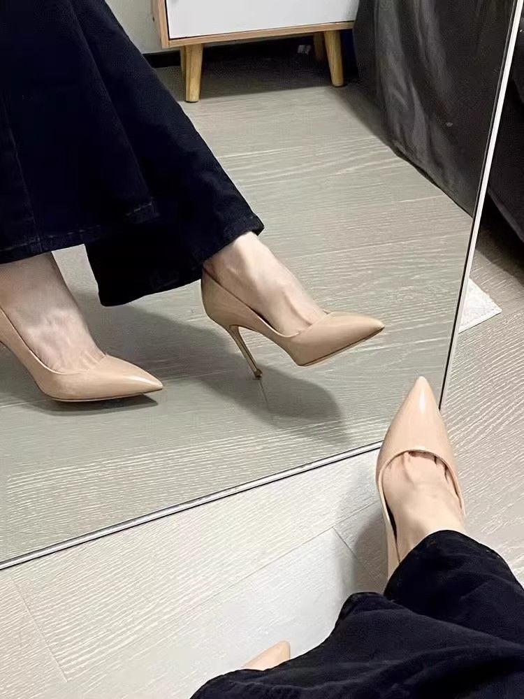 [첫 싱글 스트레이트 다운] 샤오 샹펑 누드 레드 바닥 하이힐 여성 섹시 올 사이드 빈 싱글 슈즈 포인팅 얕은 입 샌들스토어 가기