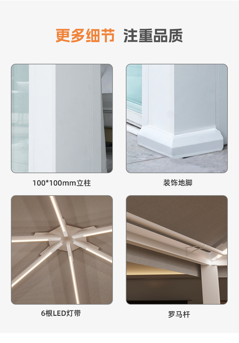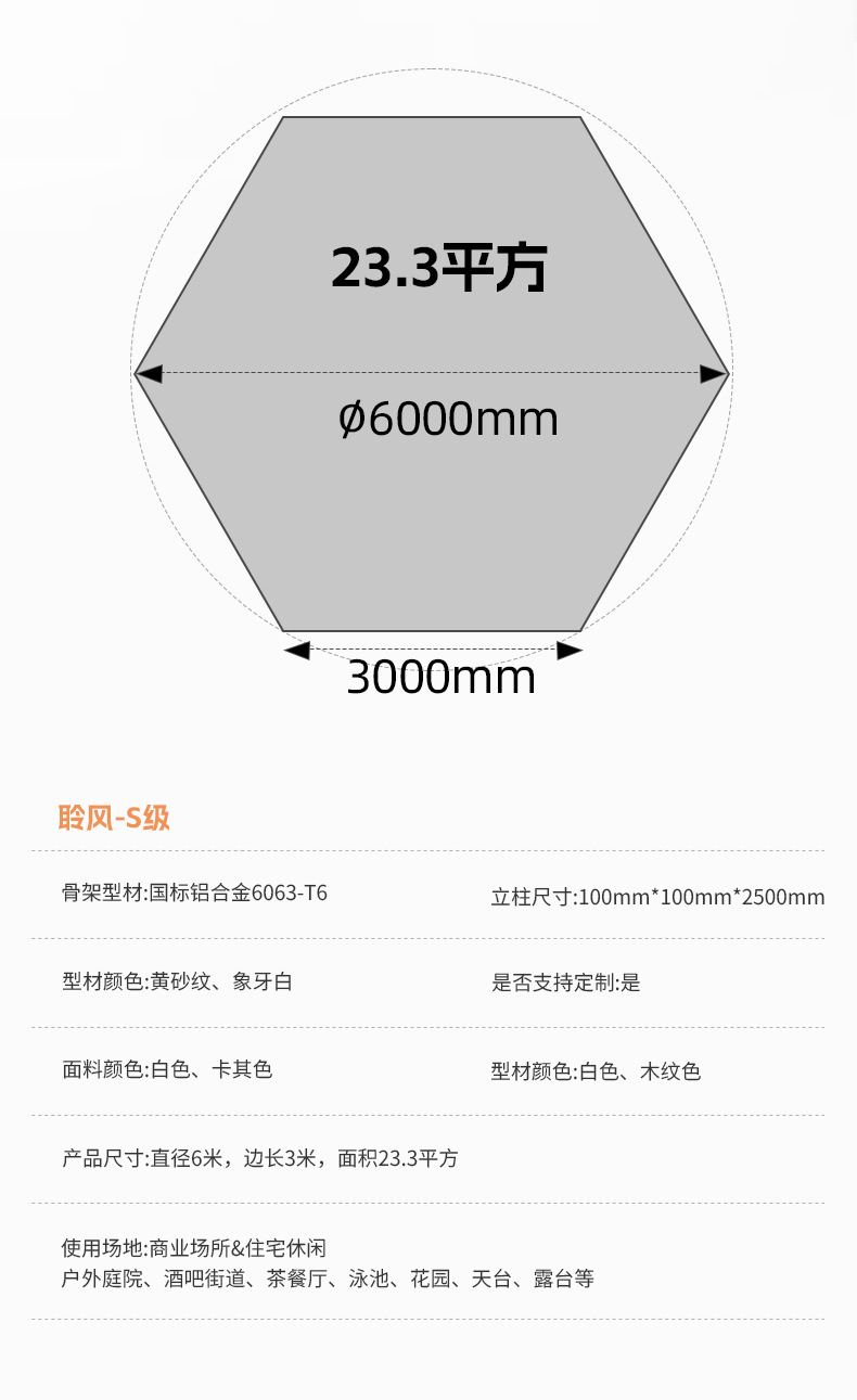차양 캐노피 외부에 케이터링 가벼운 육각형 차양 태양 방을 갖춘 상업용 대형 야외 파빌리온 알루미늄 합금 텐트스토어 가기