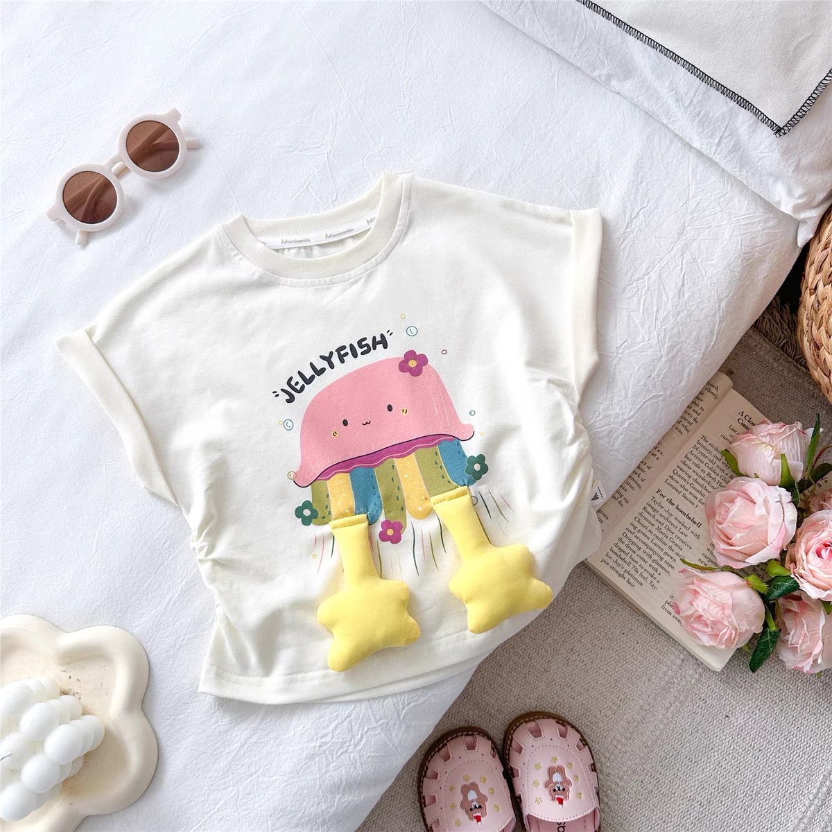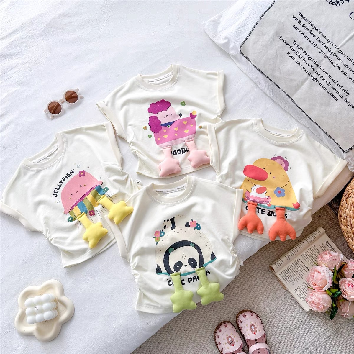 한국 스타일 소녀의 귀여운 3 차원 만화 순수한 면 아기 소녀를위한 반팔 티셔츠 여름 새로운 유행 올 매치 탑