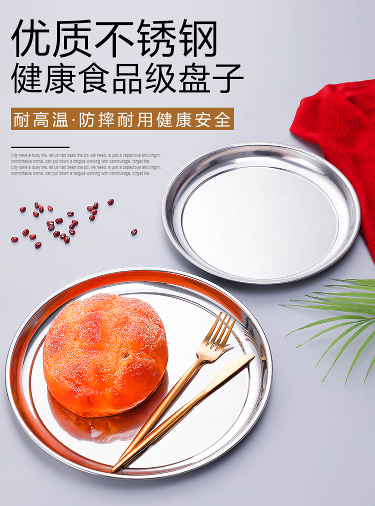 두꺼운 스테인레스 스틸 플레이트 라운드 대형 디스크 플랫 바닥 얕은 트레이 초대형 생선 헤드 플레이트 가정용 접시 레스토랑 접시스토어 가기