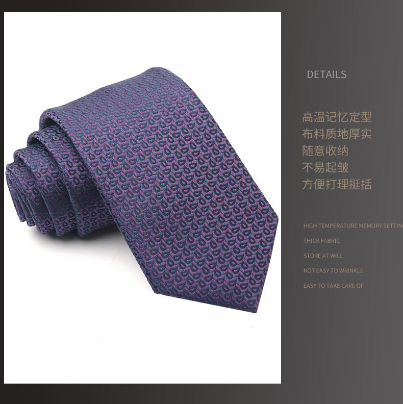 봄과 여름 새로운 보라색 남성 비즈니스 넥타이 신사 패션 원사 염색 자카드 폴리 에스터 실크 핸드 타이 세트 타이스토어 가기