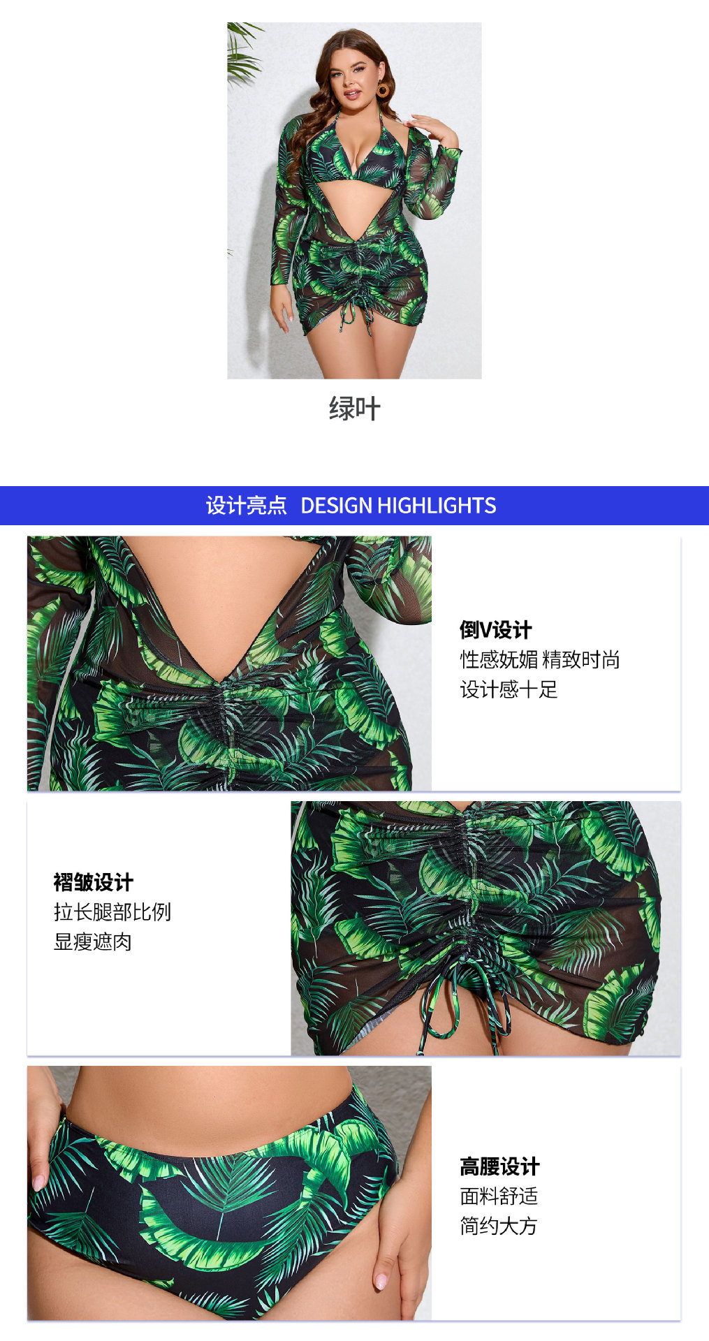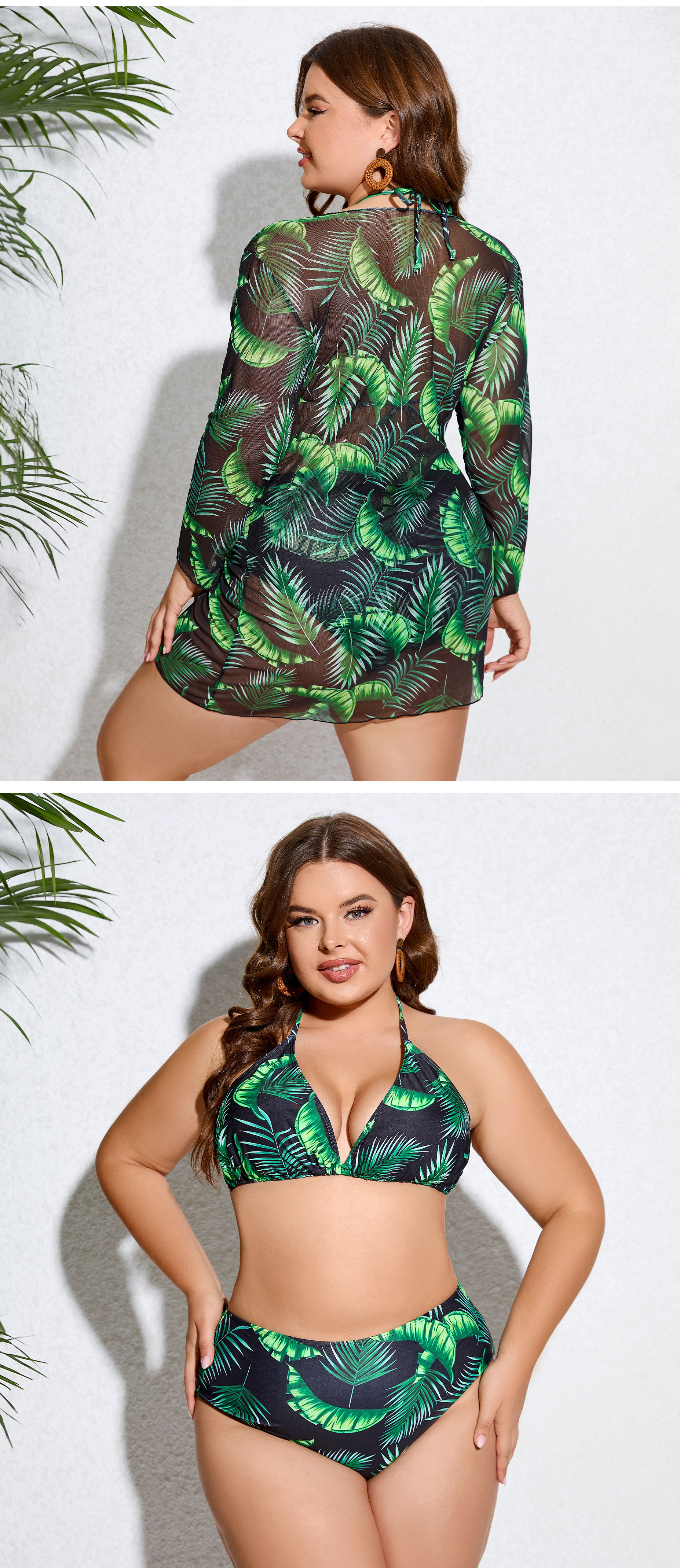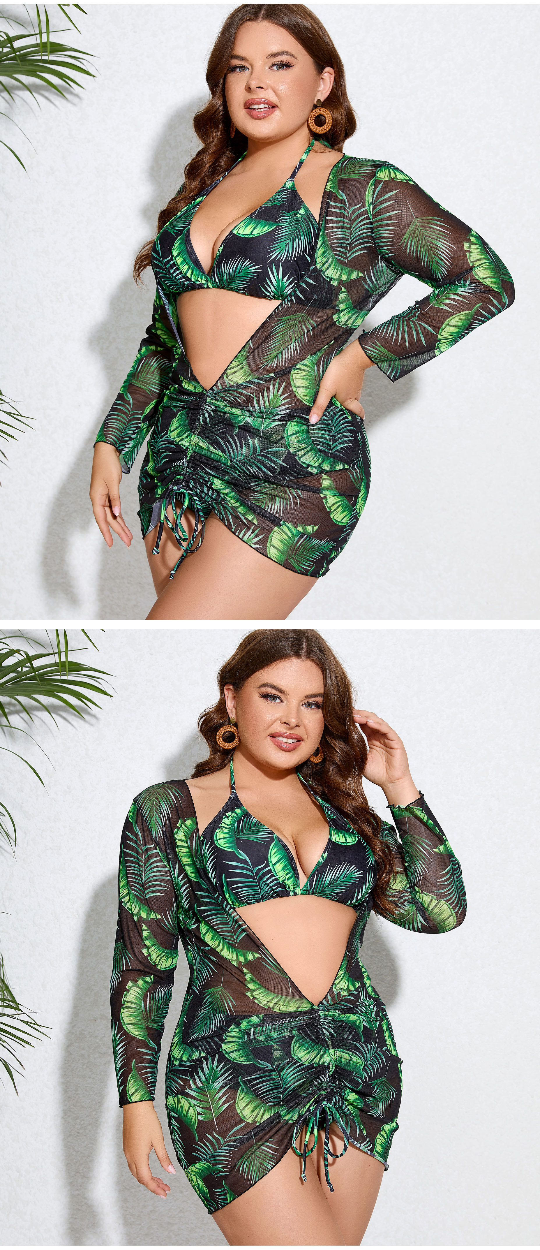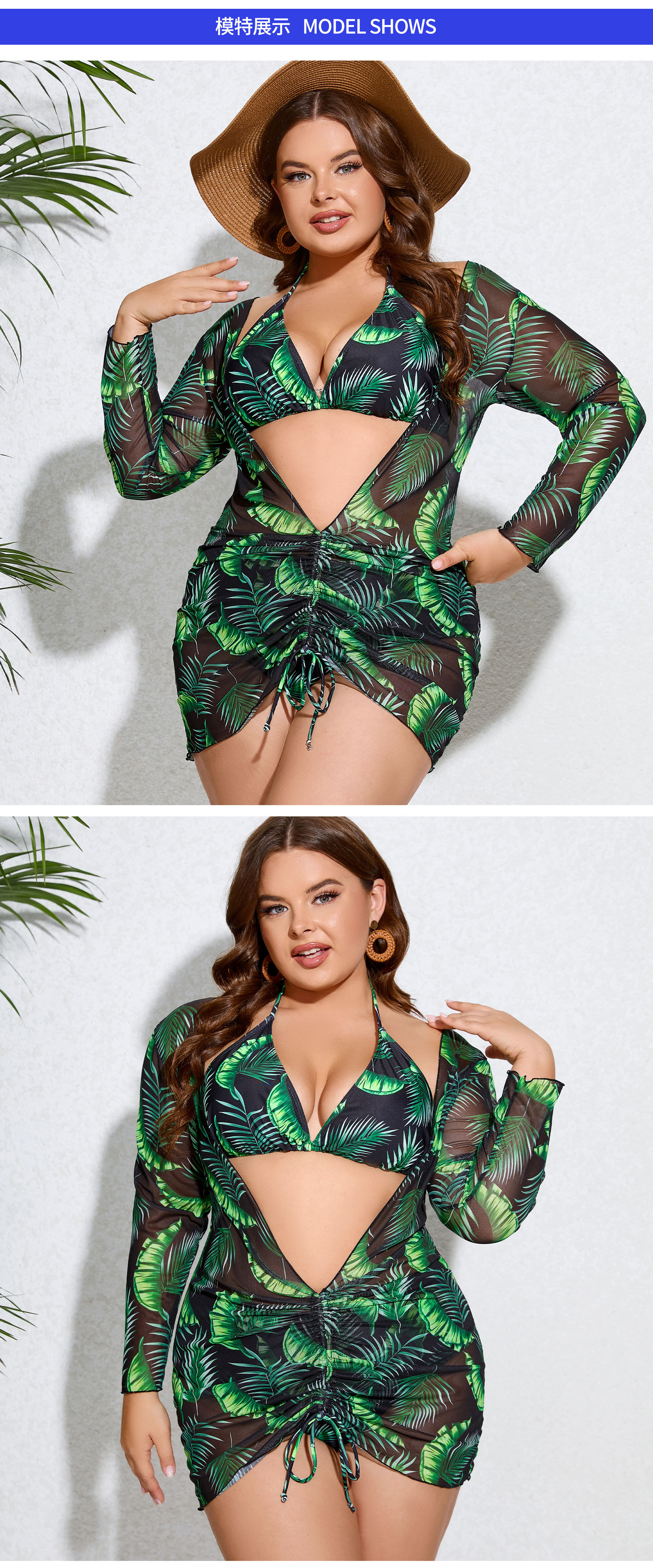 2025년 신상 크로스보더 플러스 사이즈 여성용 타이트 섹시 백리스 스트랩 푸쉬업 3피스 분리형 여성 수영복스토어 가기