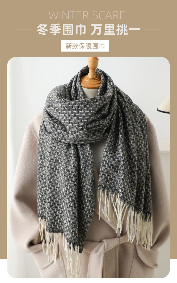 새로운 모조 캐시미어 스카프 가을과 겨울 한국식 올매치 하이 엔드 따뜻한 목 여자 두꺼운 일본식 인기 목도리
