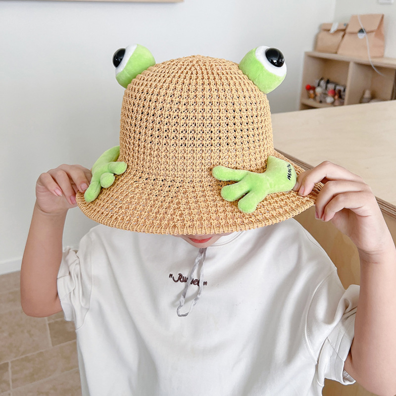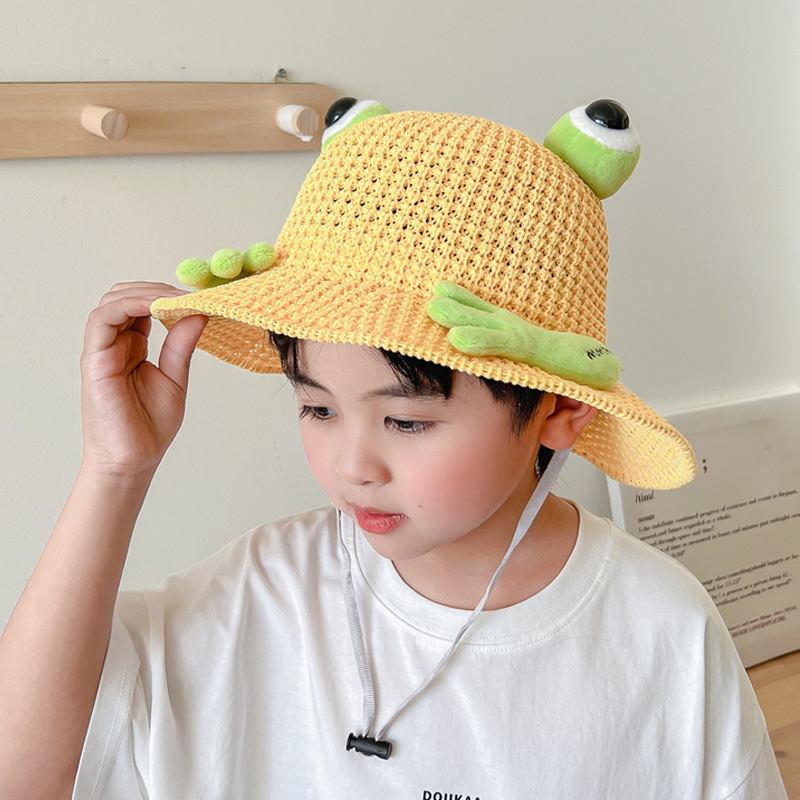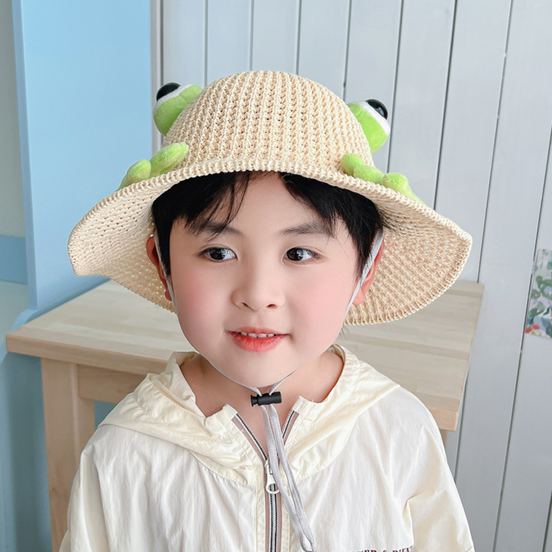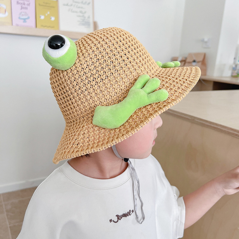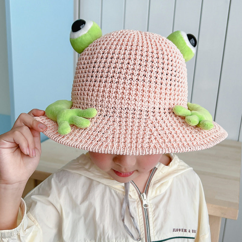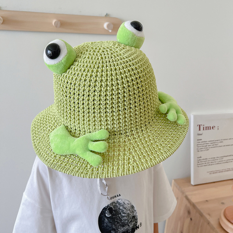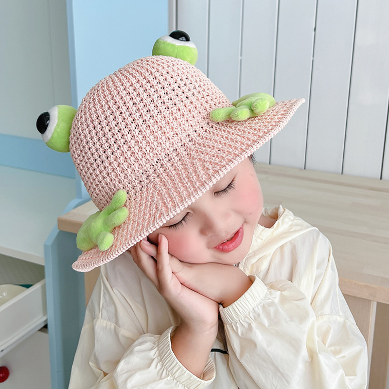 어린이 태양 모자 소년과 소녀 여름 태양 모자 귀여운 3 차원 개구리 작은 먼지 야외 여행 조수