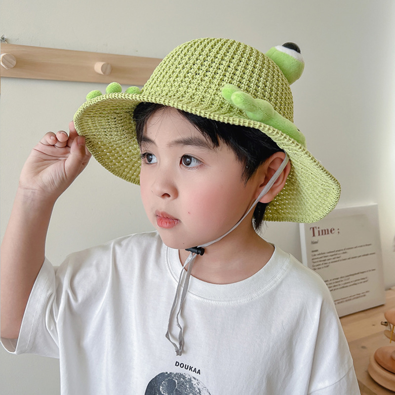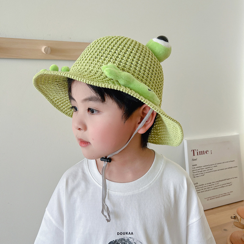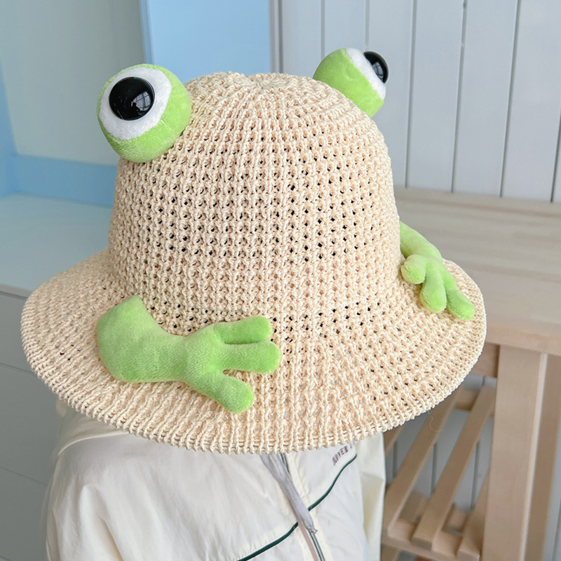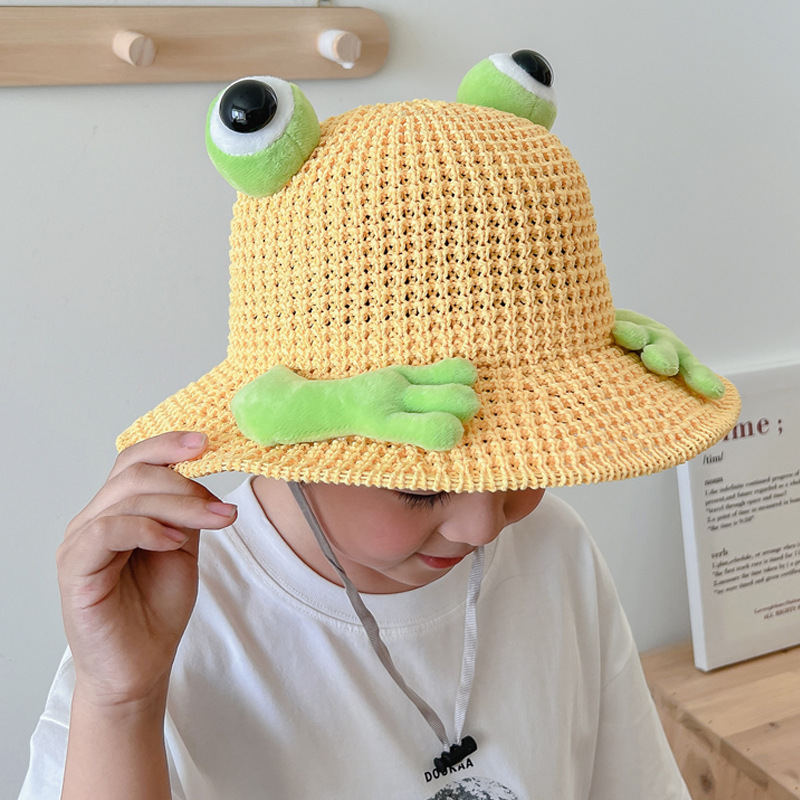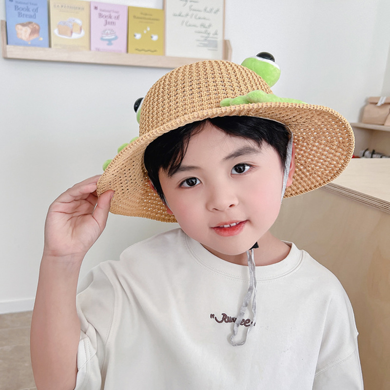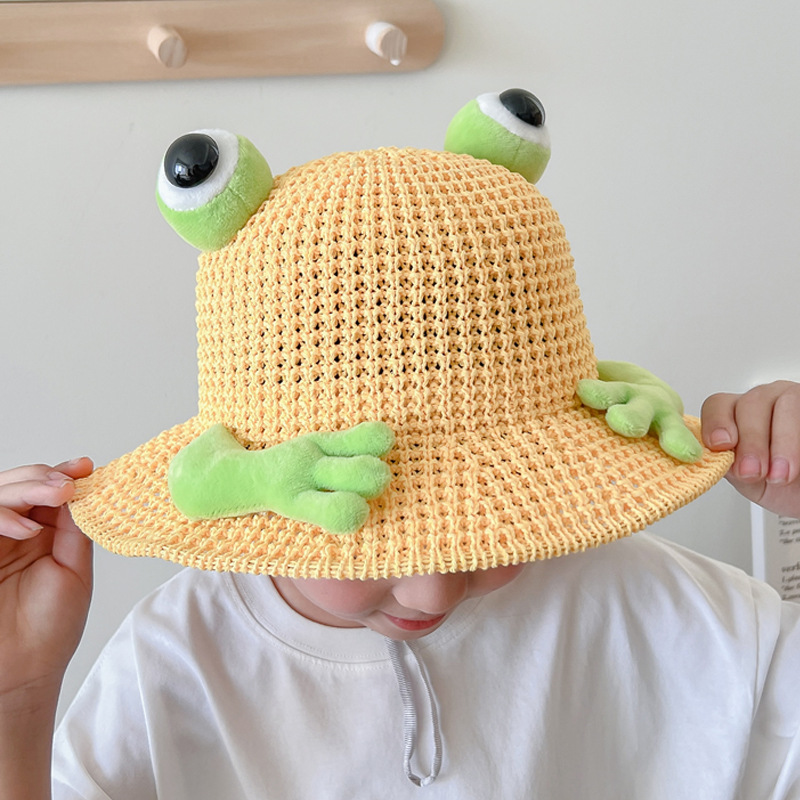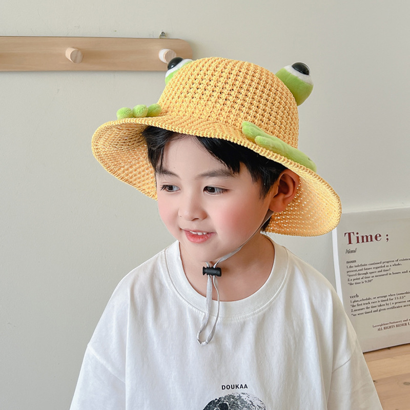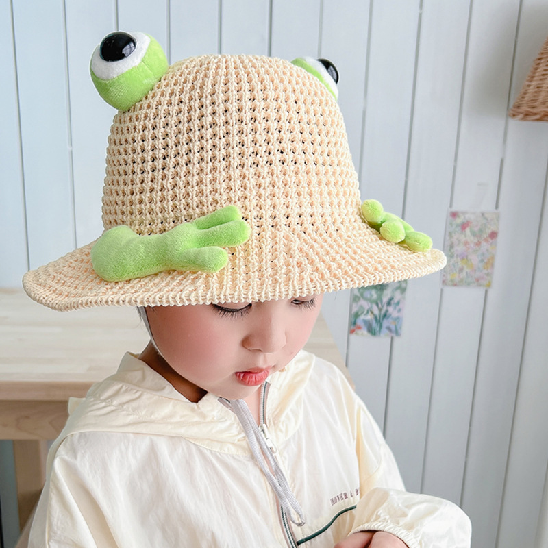 어린이 태양 모자 소년과 소녀 여름 태양 모자 귀여운 3 차원 개구리 작은 먼지 야외 여행 조수