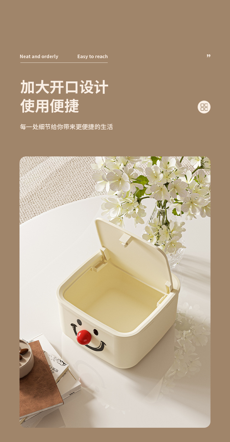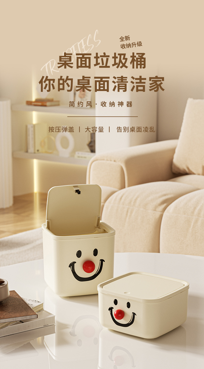 데스크탑 휴지통 가정용 주방 거실 사무실 화장실 도파민 프레스 링 수납함 수납용품