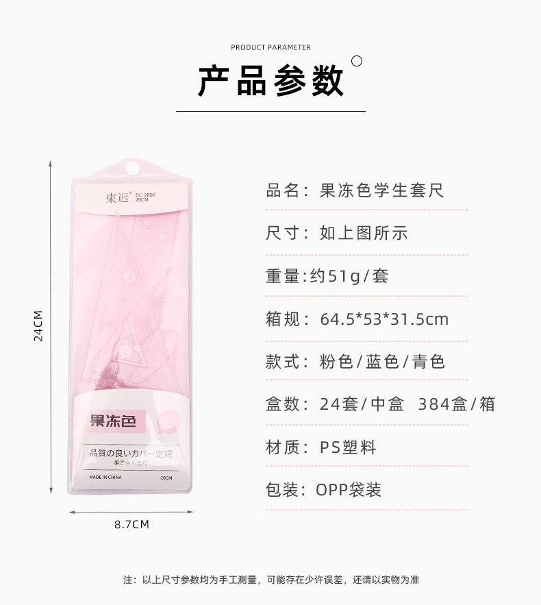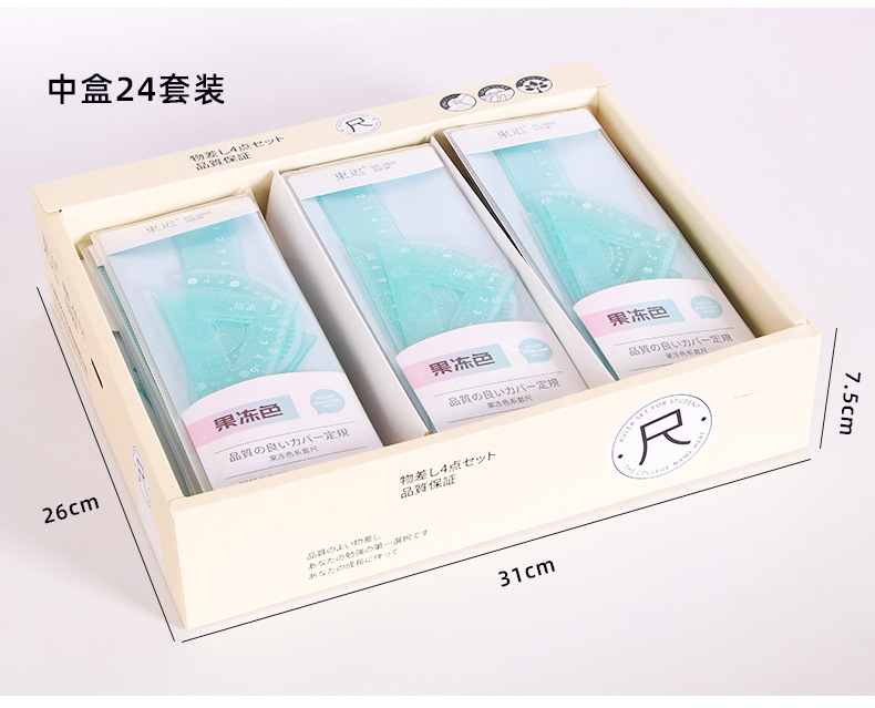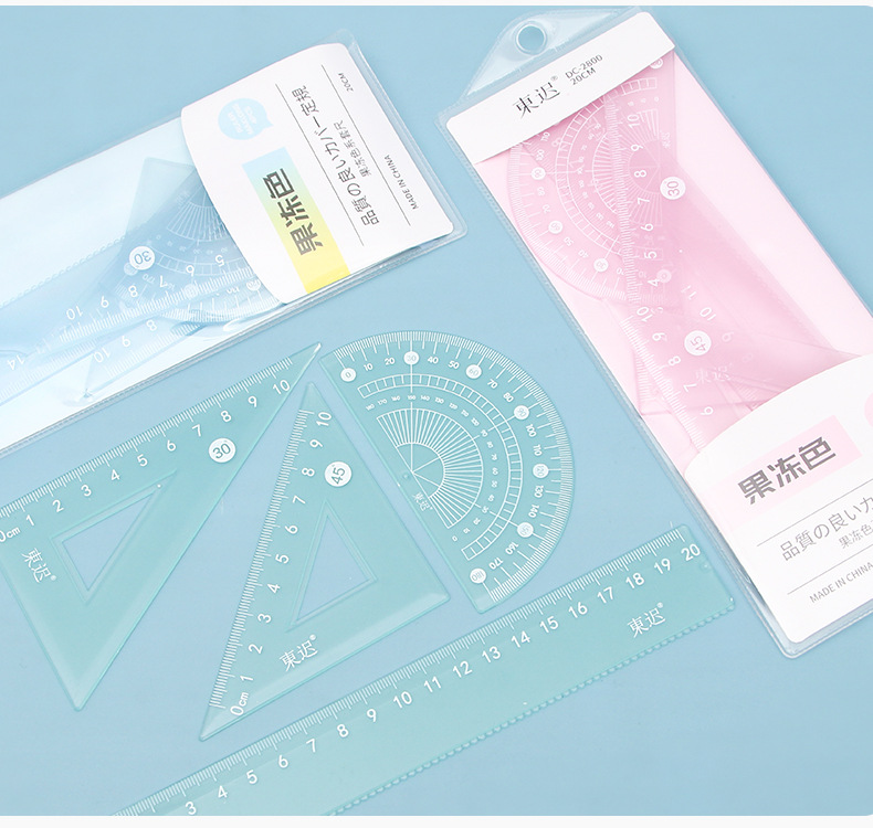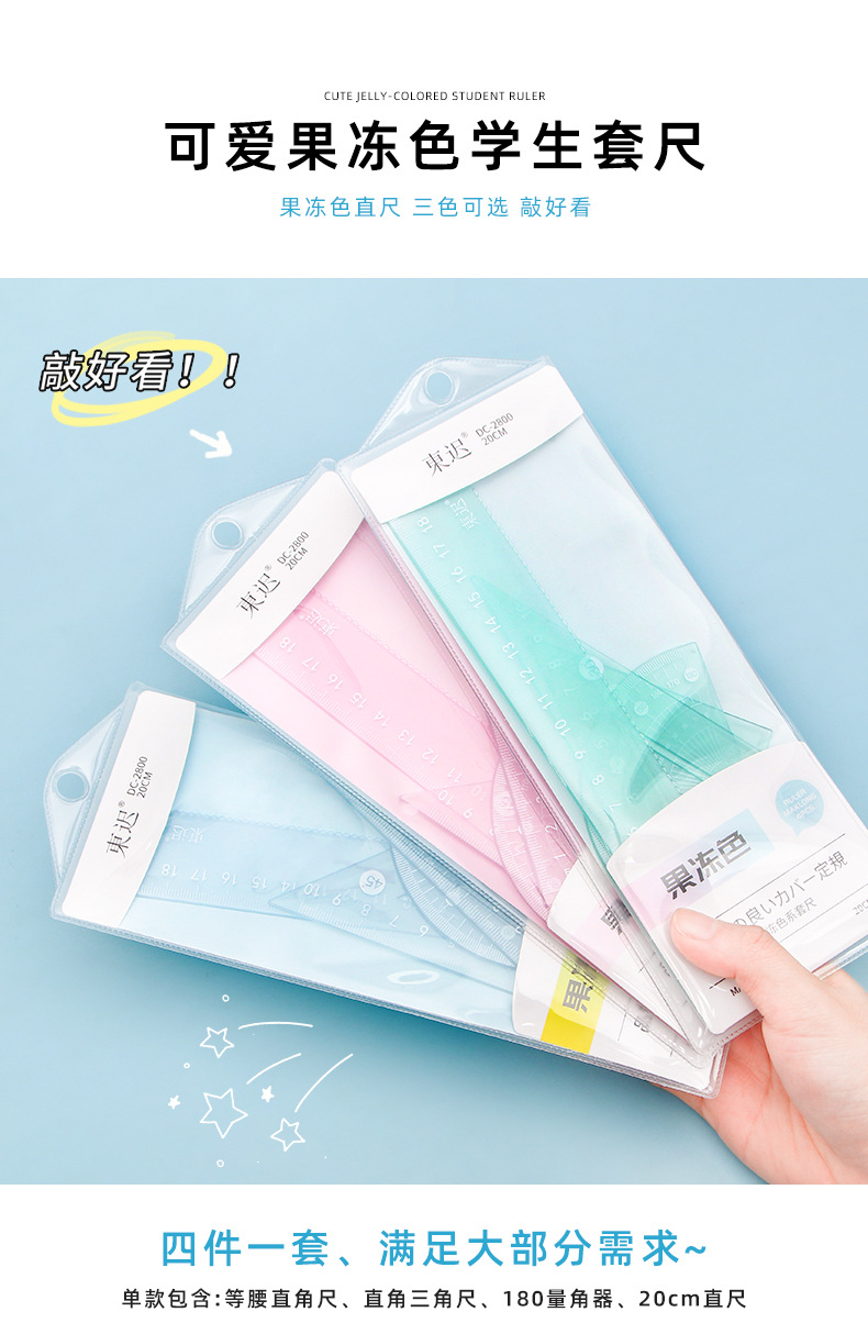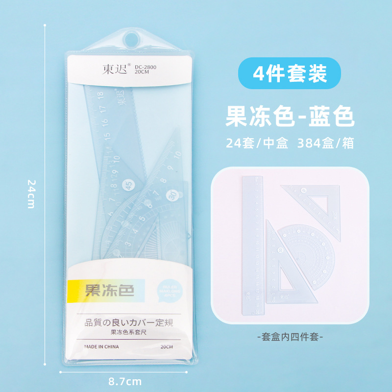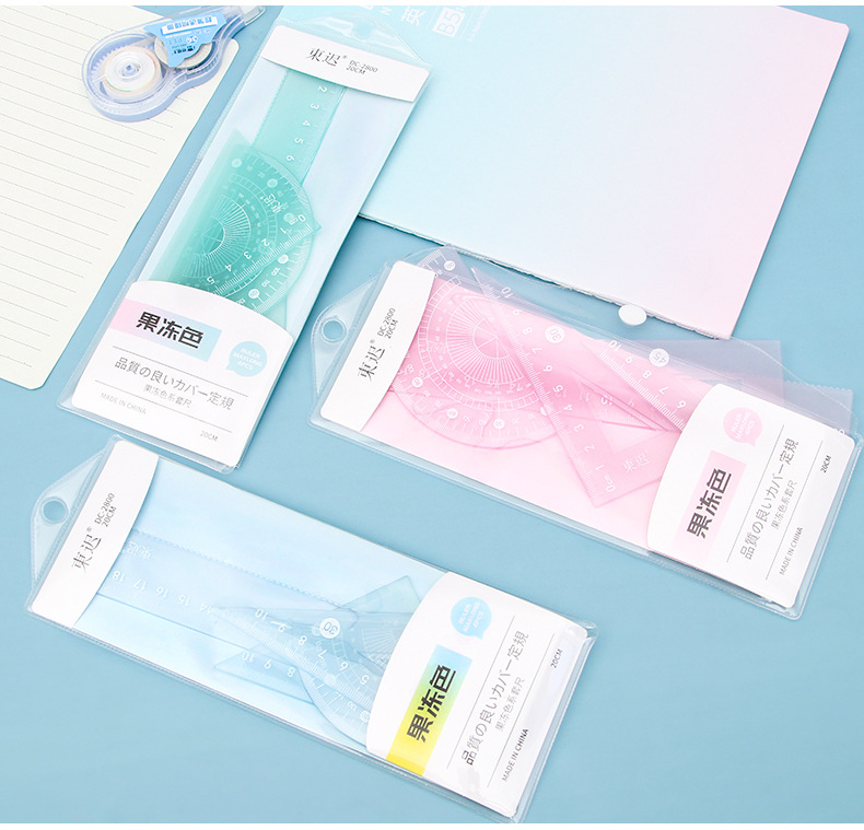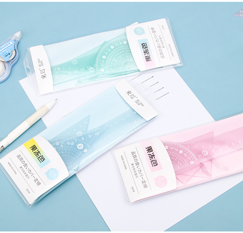 새로운 젤리 컬러 세트 통치자 학생 다기능 20cm 통치자 4 피스 세트 높은 색상 가치 학교 용품 문구 도매