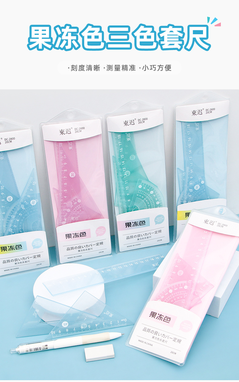새로운 젤리 컬러 세트 통치자 학생 다기능 20cm 통치자 4 피스 세트 높은 색상 가치 학교 용품 문구 도매스토어 가기