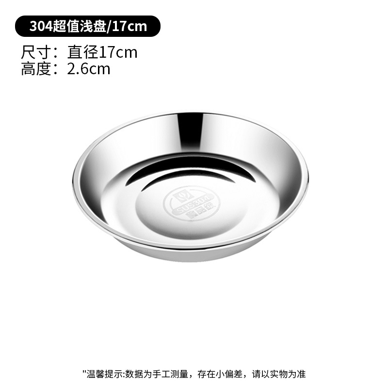 304 스테인레스 스틸 플레이트 주방 접시 두꺼운 디스크 가정용 스팀 플레이트 식품 등급 접시 트레이 핫 팟 디너 플레이트스토어 가기