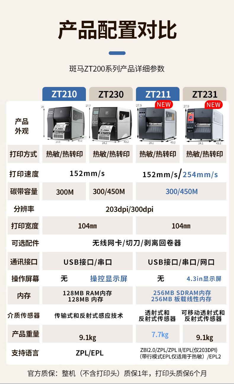• ZT231 [화면/203DPI 대신 ZT230]]