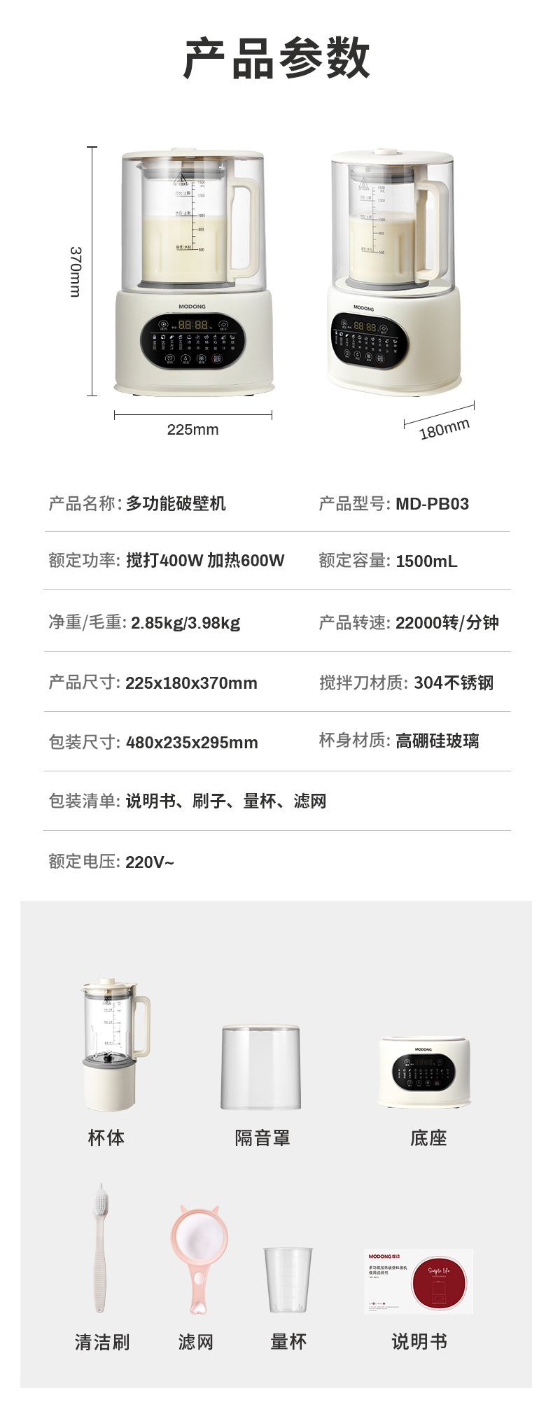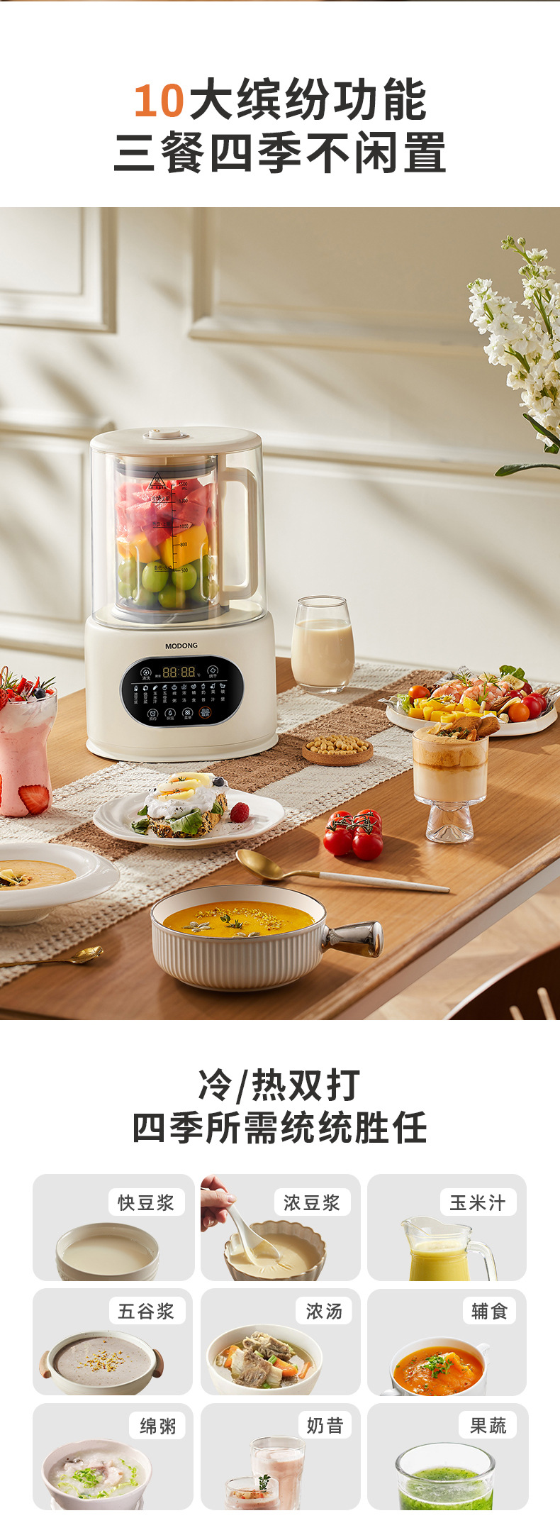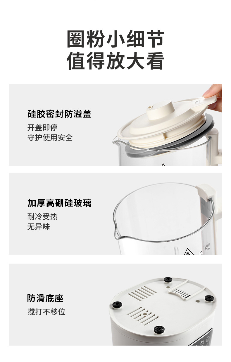5.10大智能菜单,豆浆/辅食/浓汤/绵粥/米糊/玉米/果蔬/奶昔/破壁/保温,一机顶n台