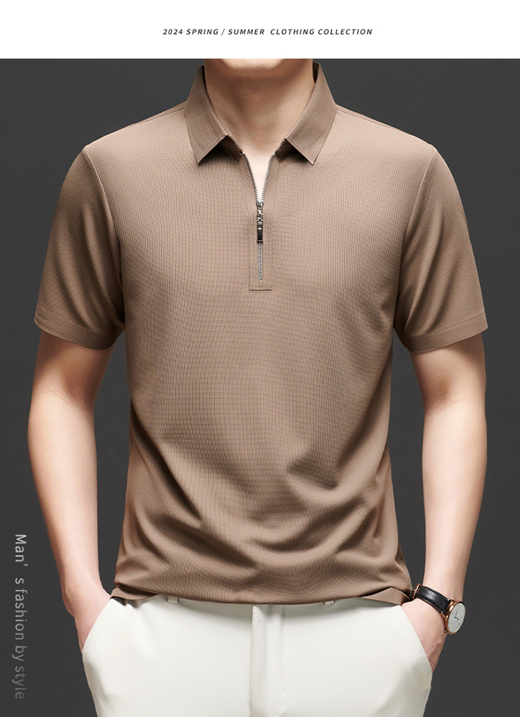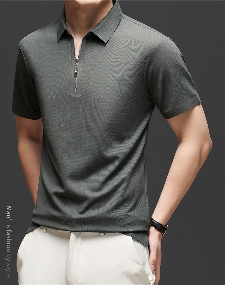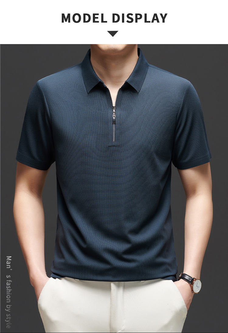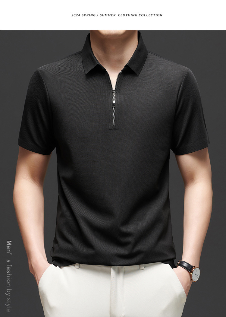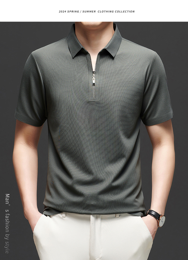 2024 새로운 원활한 노아이언 POLO 셔츠 남자의 여름 얇은 짧은 소매 느슨한 통기성 시원한 느낌 아이스 실크 남성용 티셔츠 t스토어 가기