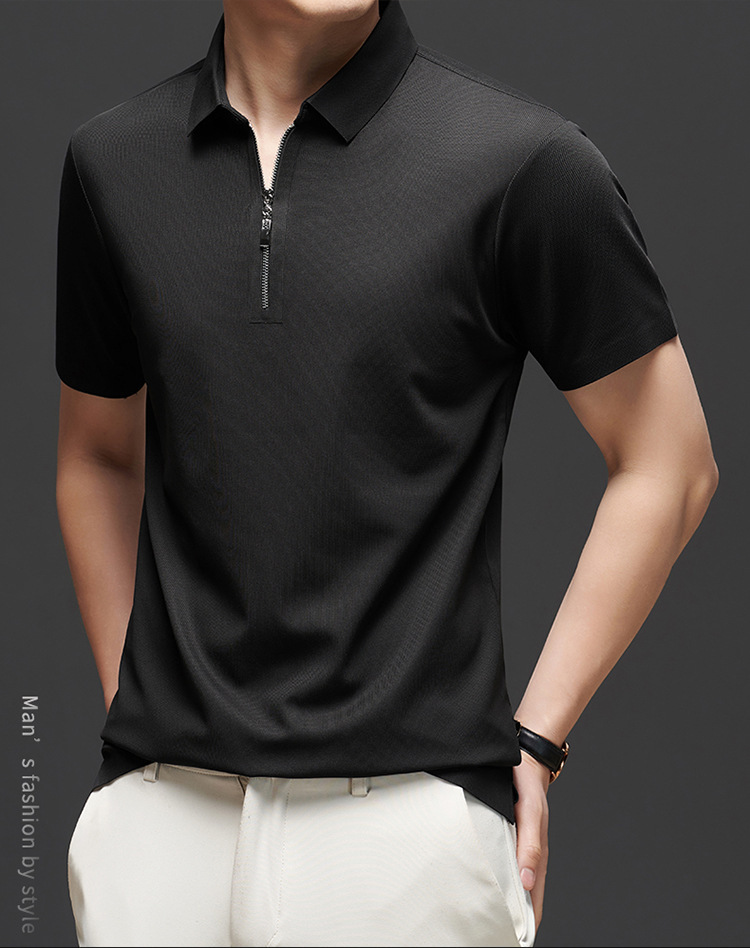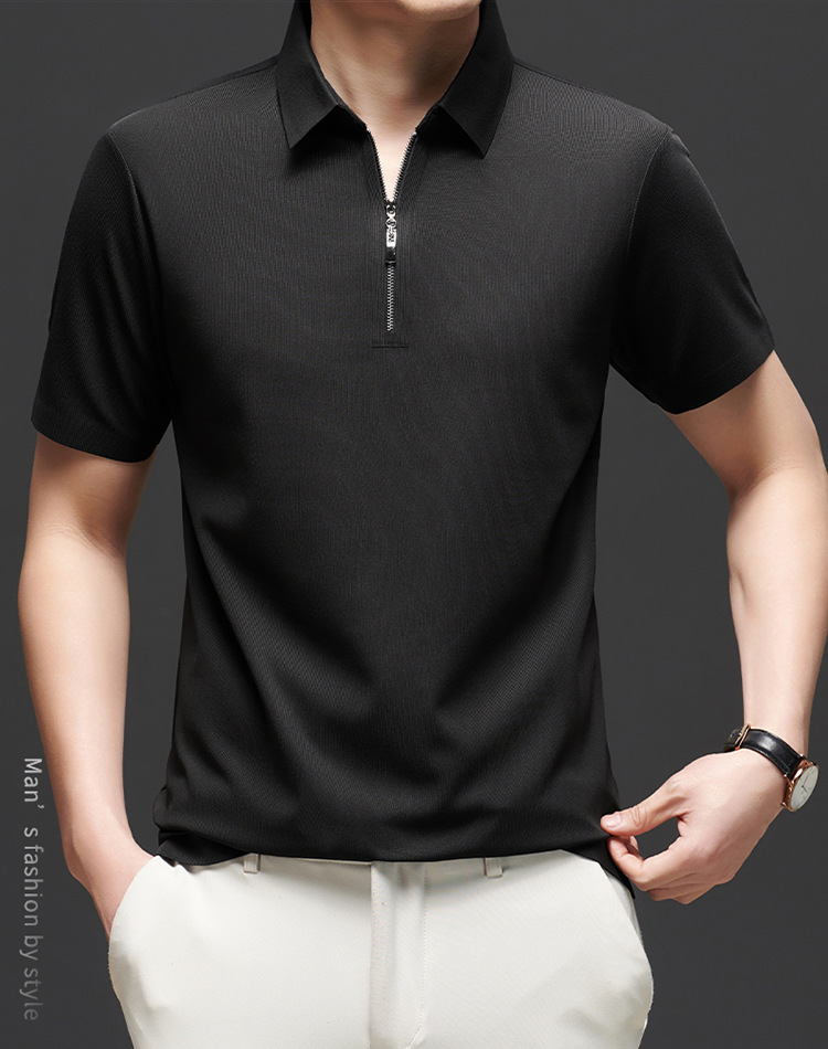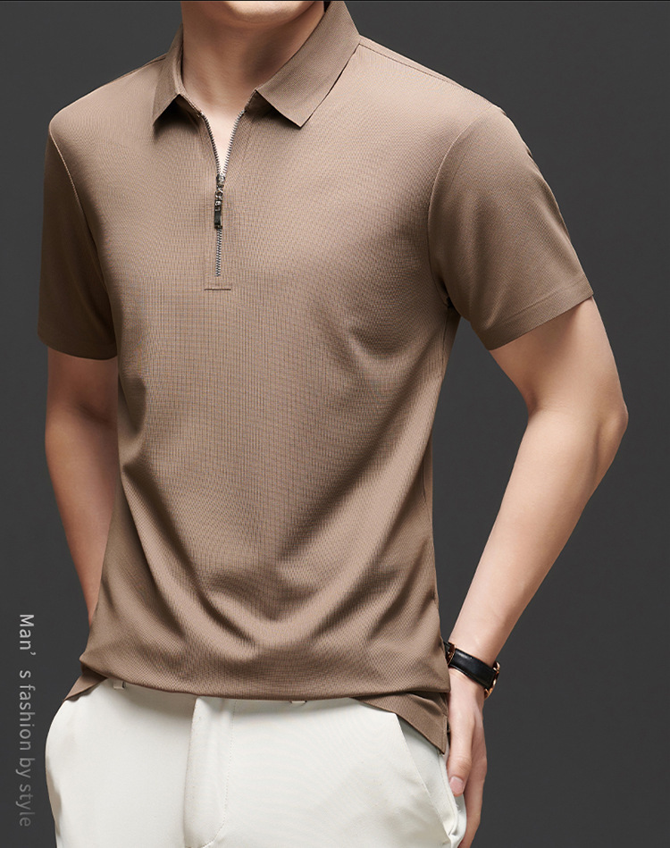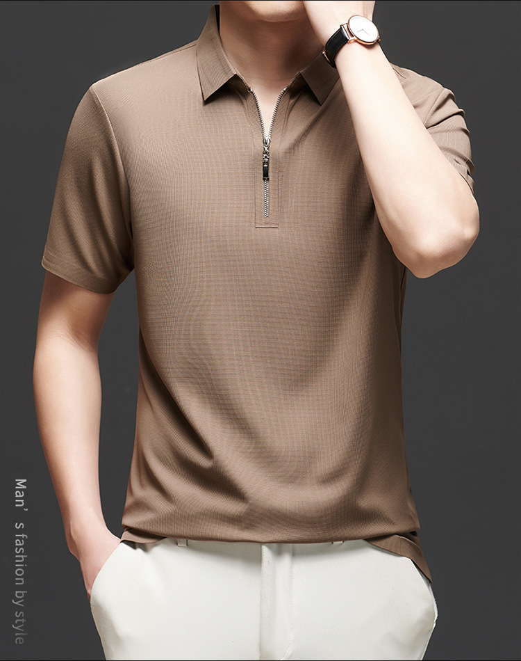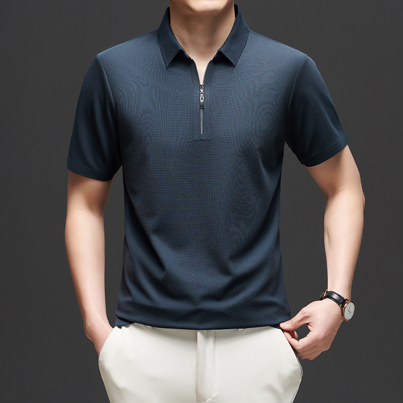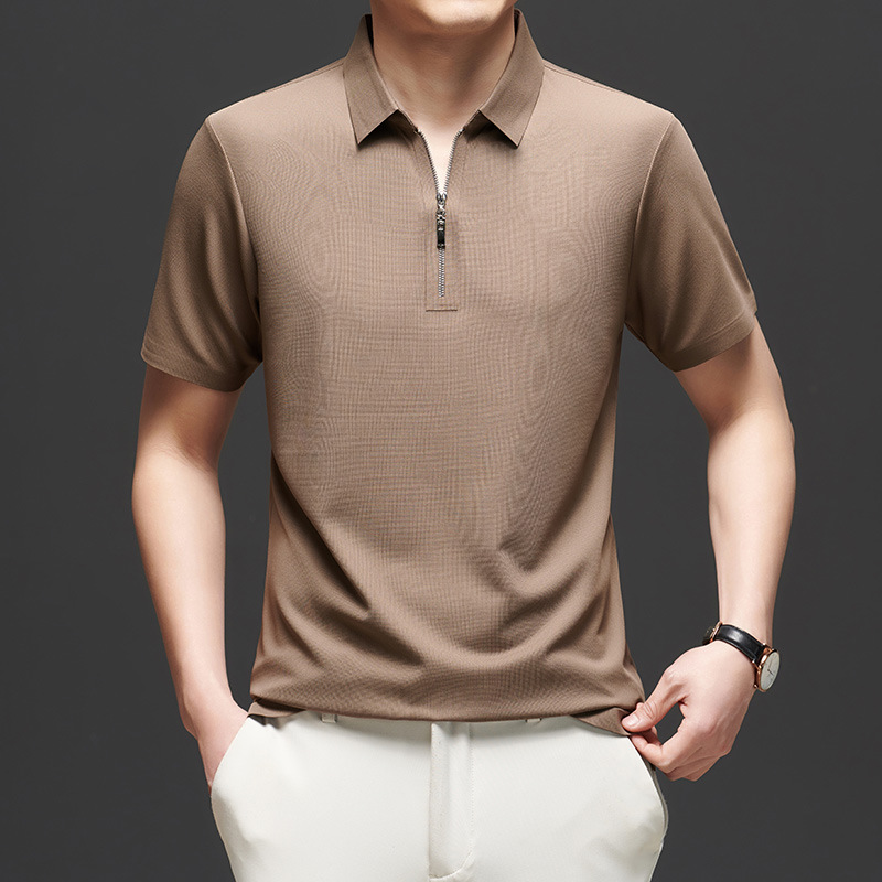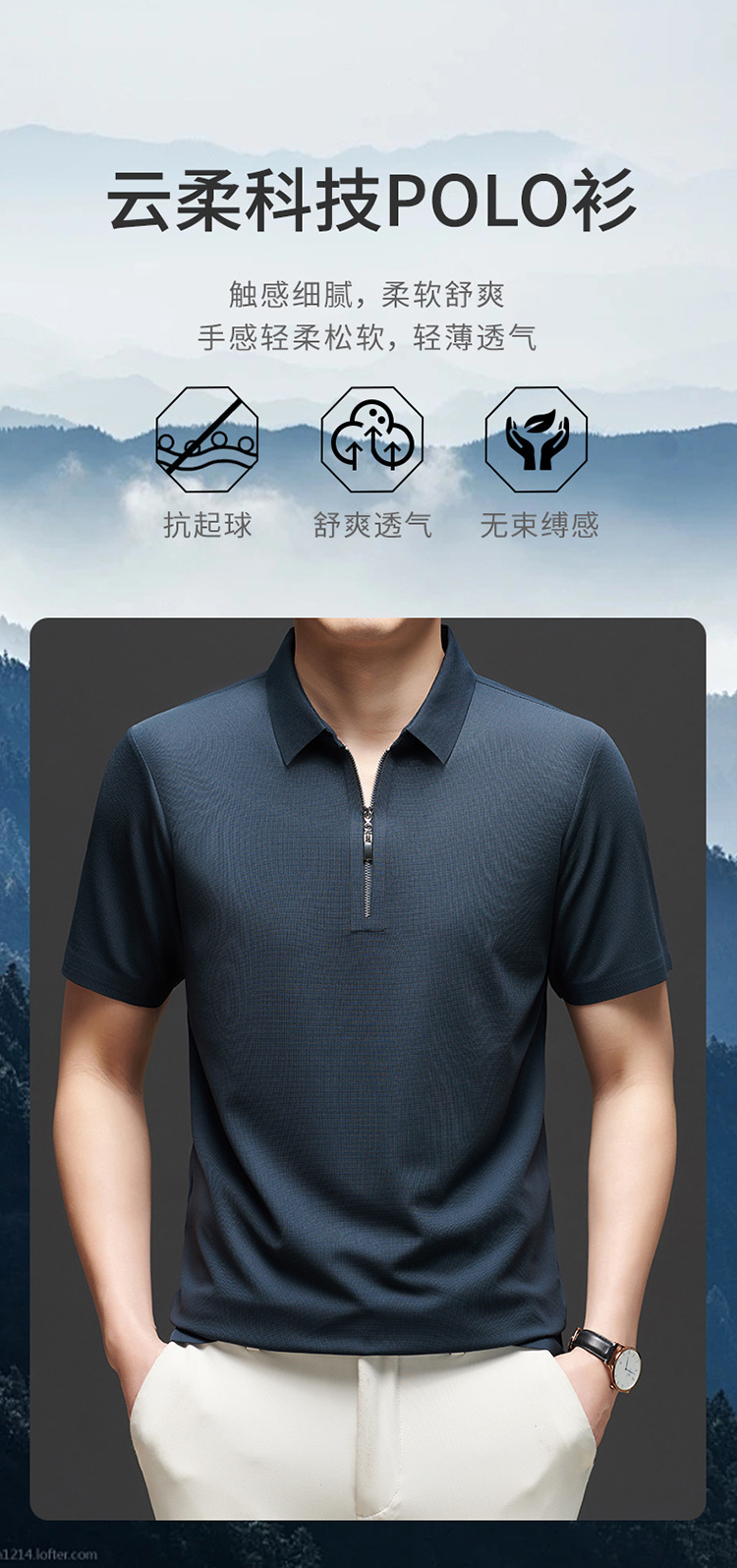 2024 새로운 원활한 노아이언 POLO 셔츠 남자의 여름 얇은 짧은 소매 느슨한 통기성 시원한 느낌 아이스 실크 남성용 티셔츠 t스토어 가기