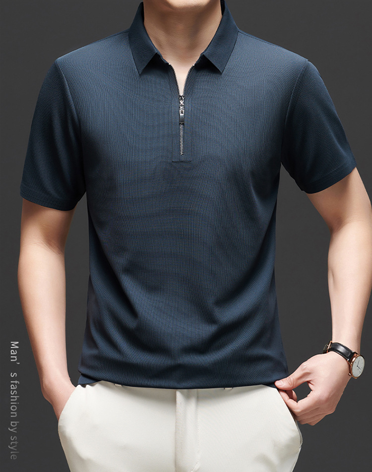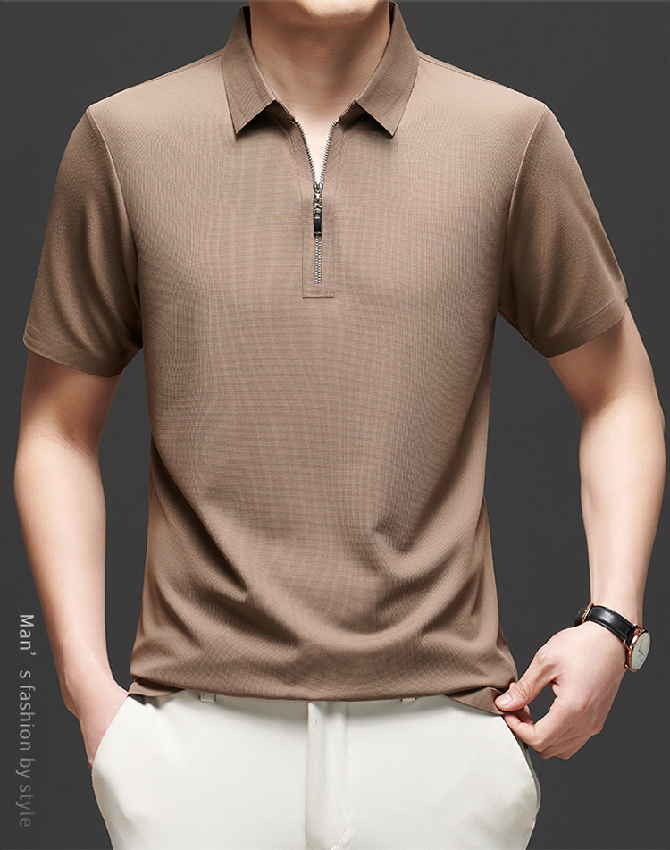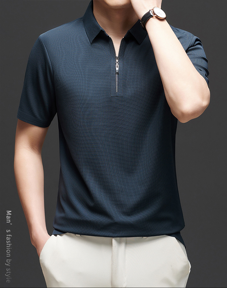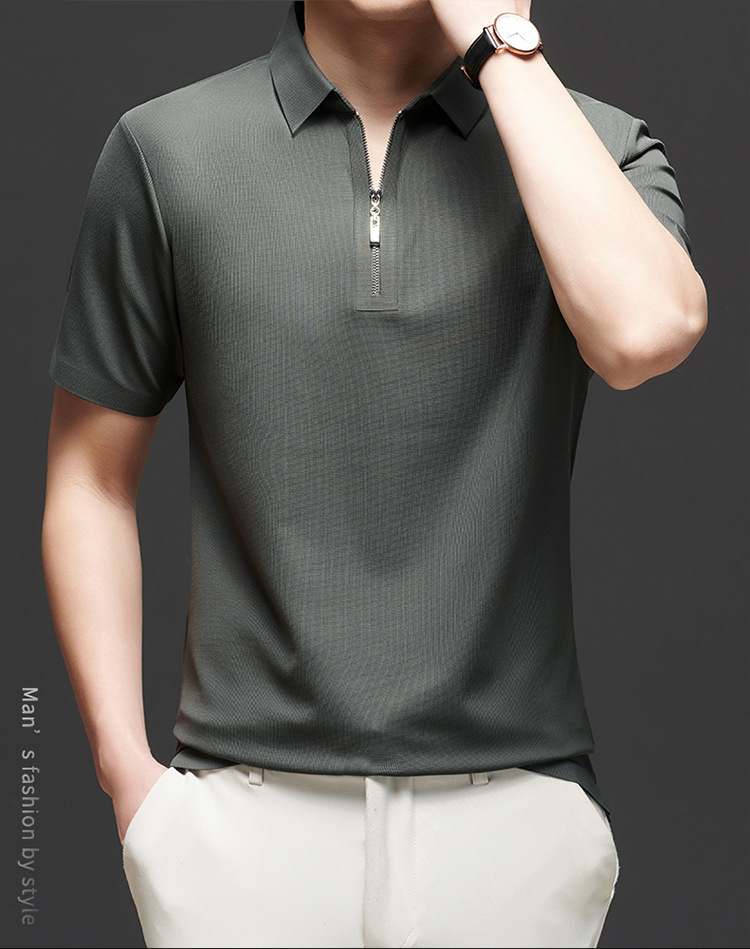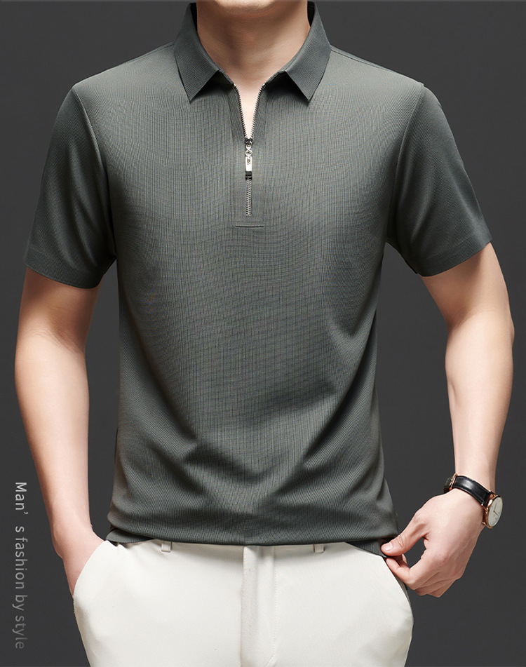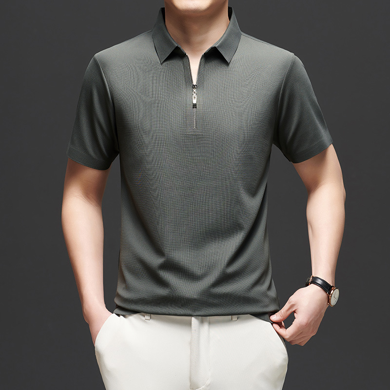 2024 새로운 원활한 노아이언 POLO 셔츠 남자의 여름 얇은 짧은 소매 느슨한 통기성 시원한 느낌 아이스 실크 남성용 티셔츠 t스토어 가기