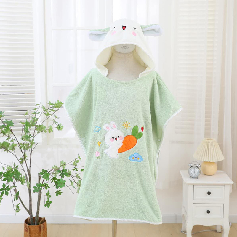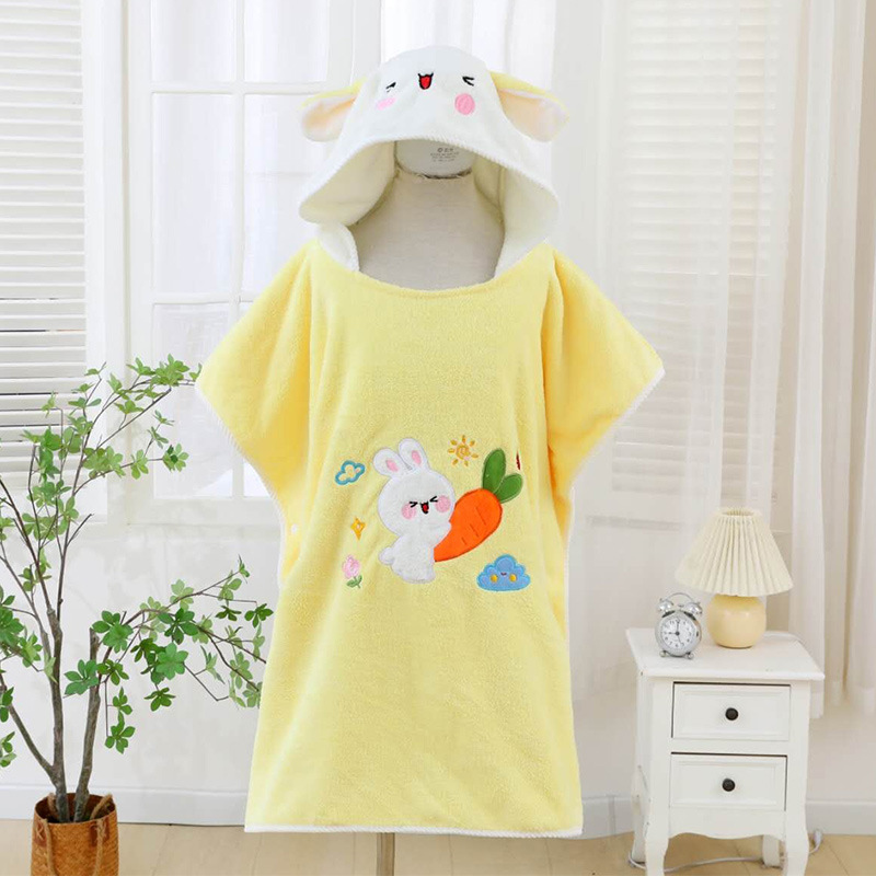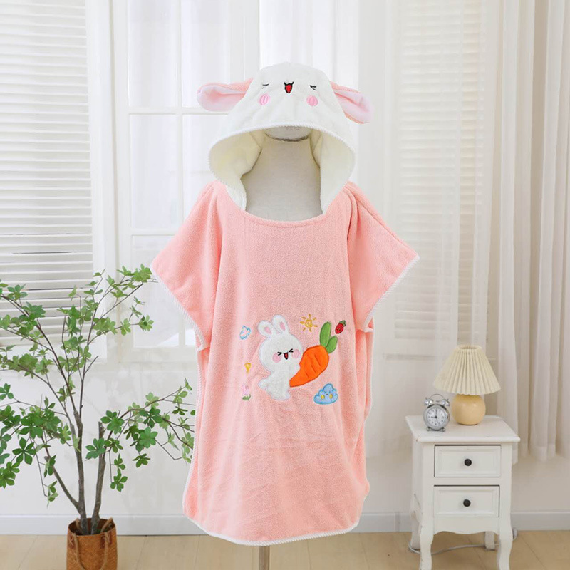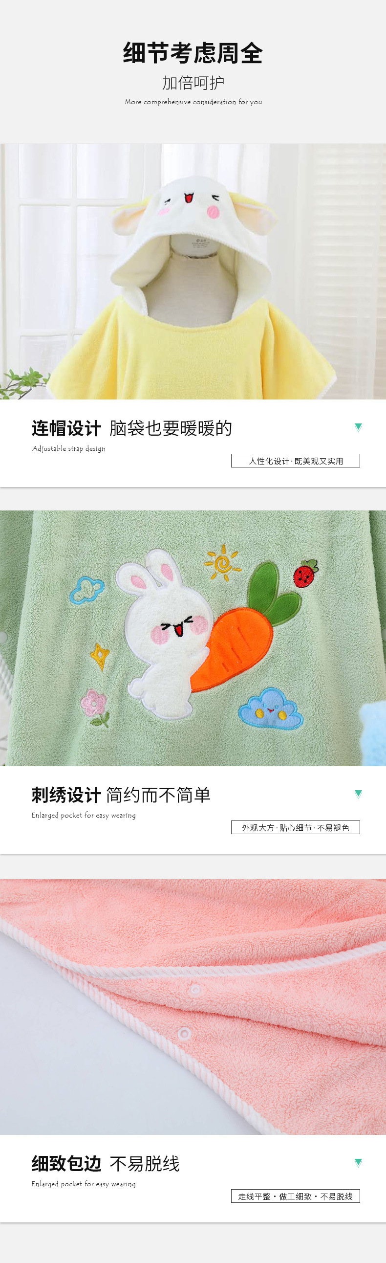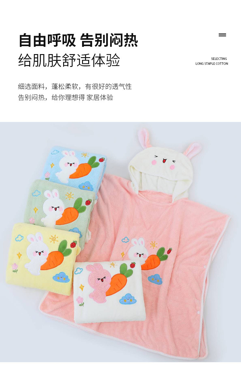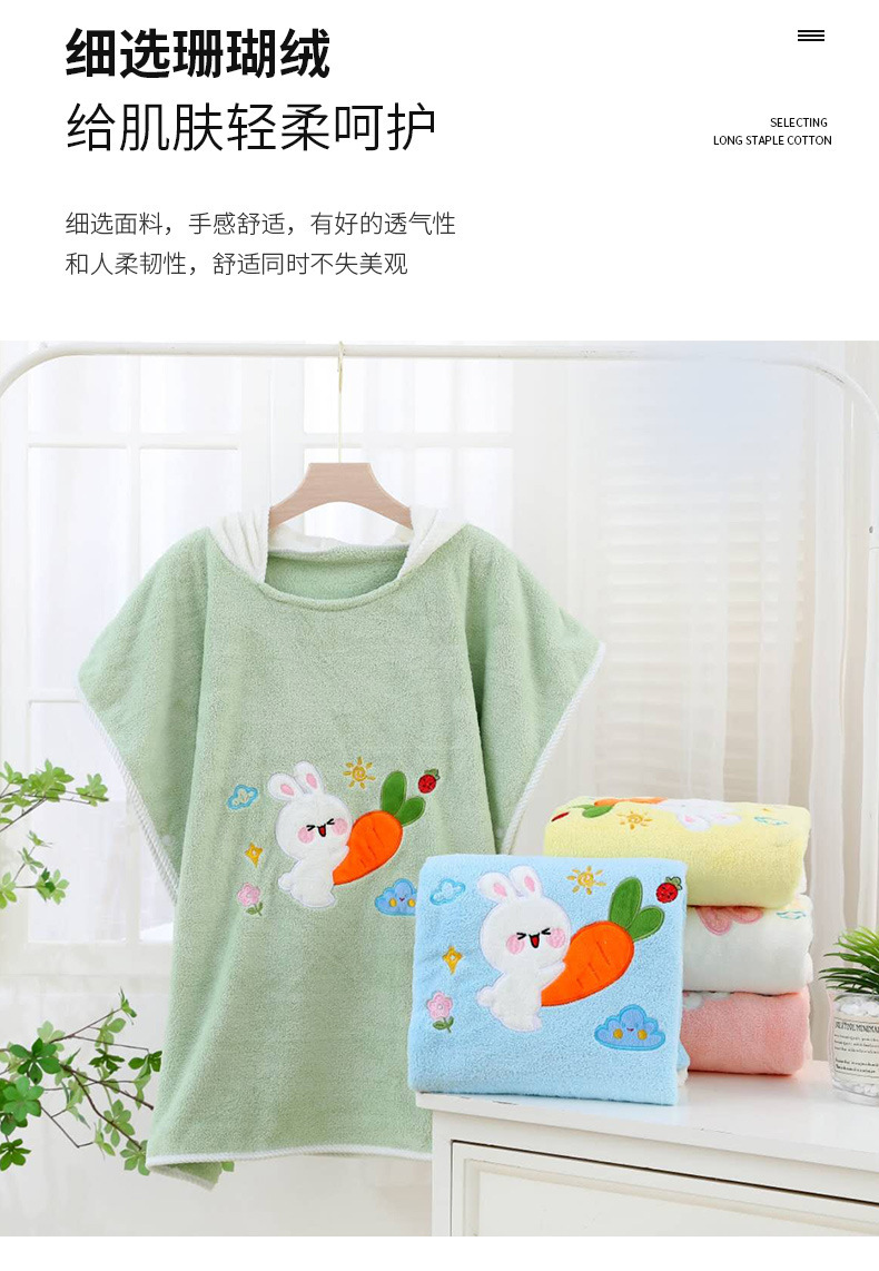 귀여운 당근 토끼 만화 목욕 가운 부드러운 흡수성 산호 양털 어린이 후드 망토 착용 및 대형 망토 포장