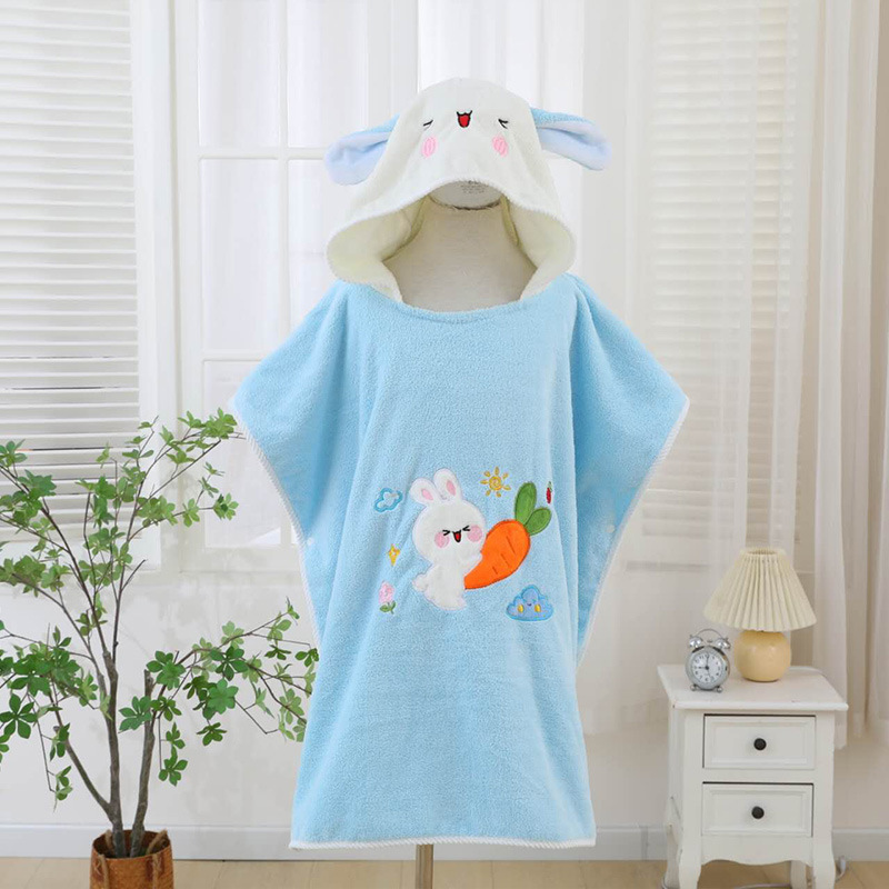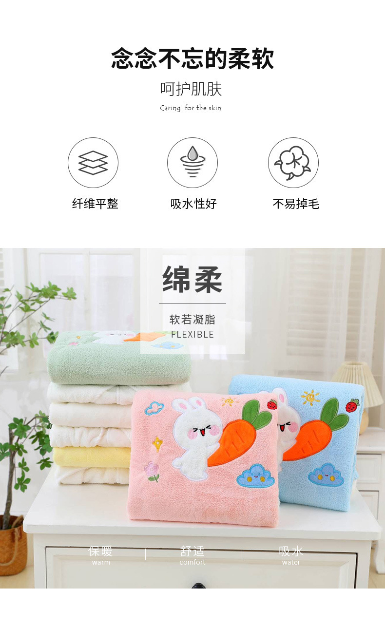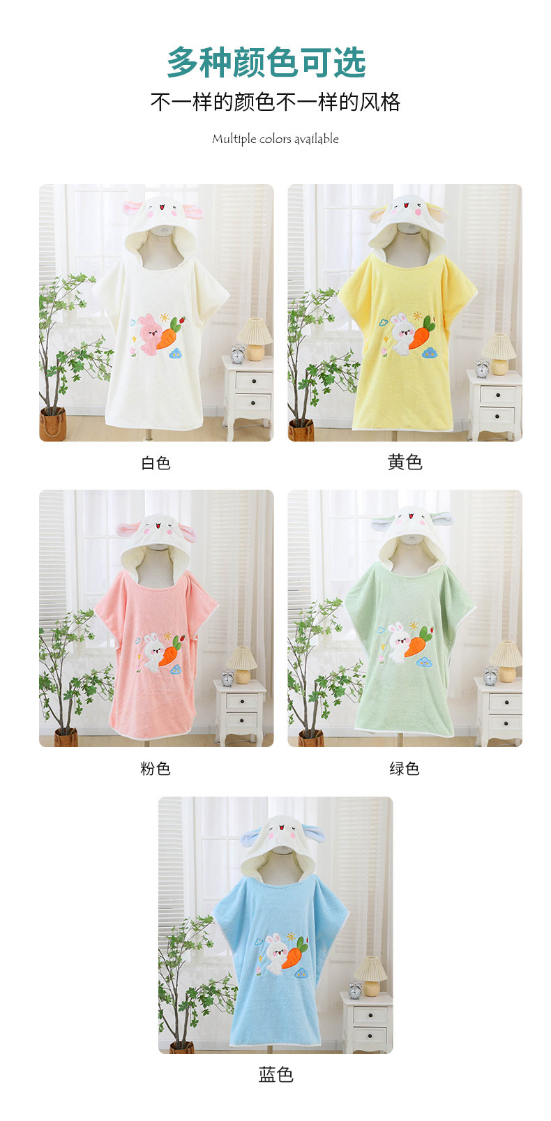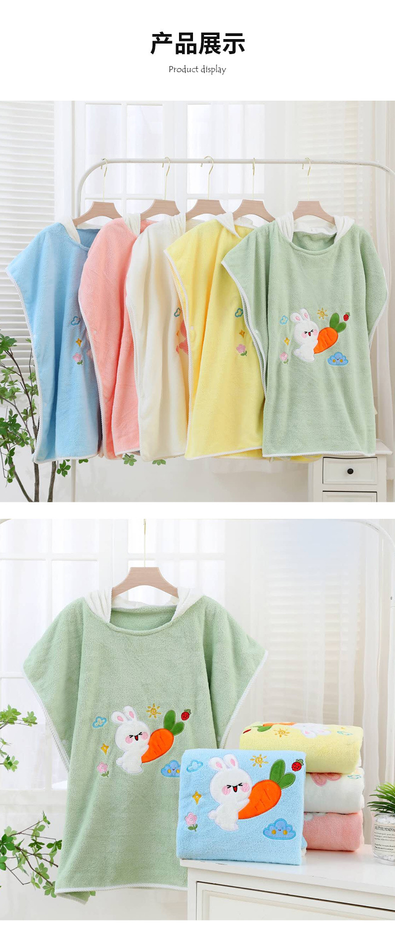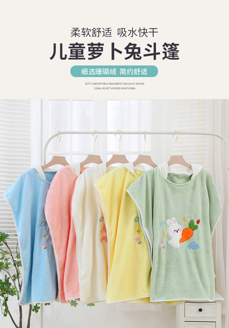 귀여운 당근 토끼 만화 목욕 가운 부드러운 흡수성 산호 양털 어린이 후드 망토 착용 및 대형 망토 포장스토어 가기