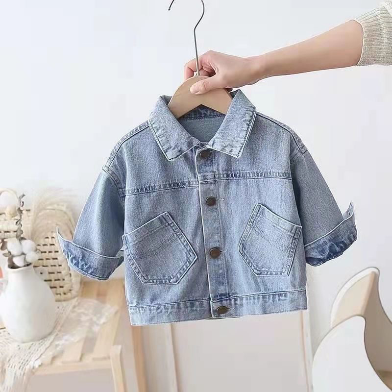 2025 소년 소녀를위한 새로운 한국식 데님 코트 봄과 가을 만화 캐주얼 아기 느슨한 서양식 코트스토어 가기
