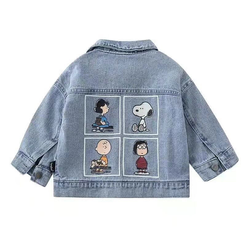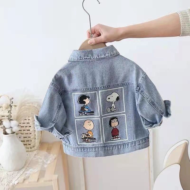 2025 소년 소녀를위한 새로운 한국식 데님 코트 봄과 가을 만화 캐주얼 아기 느슨한 서양식 코트