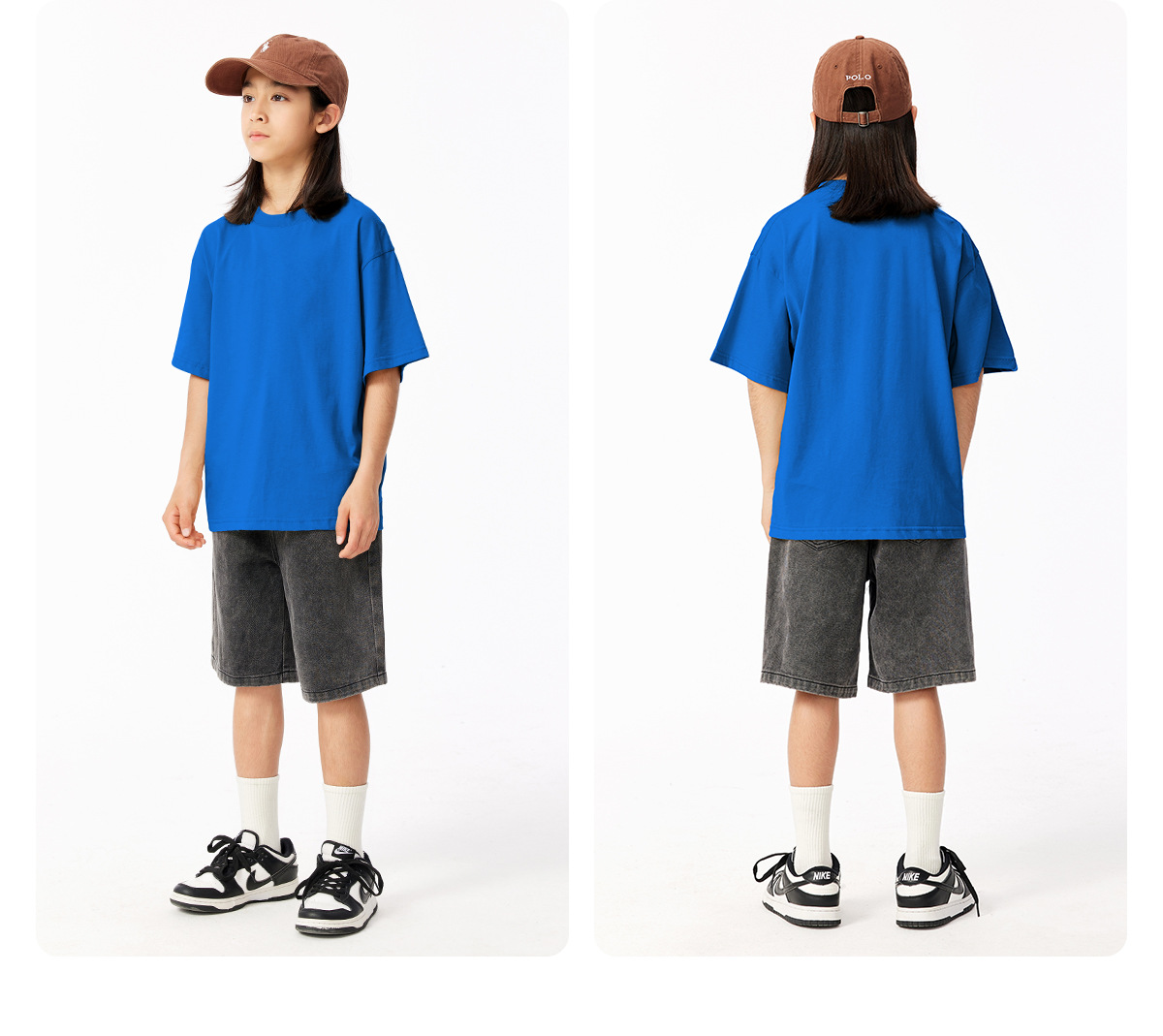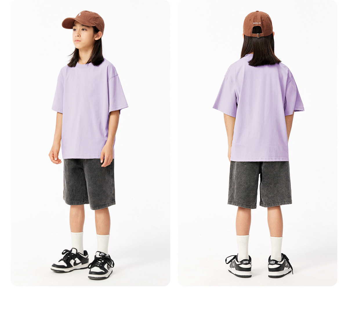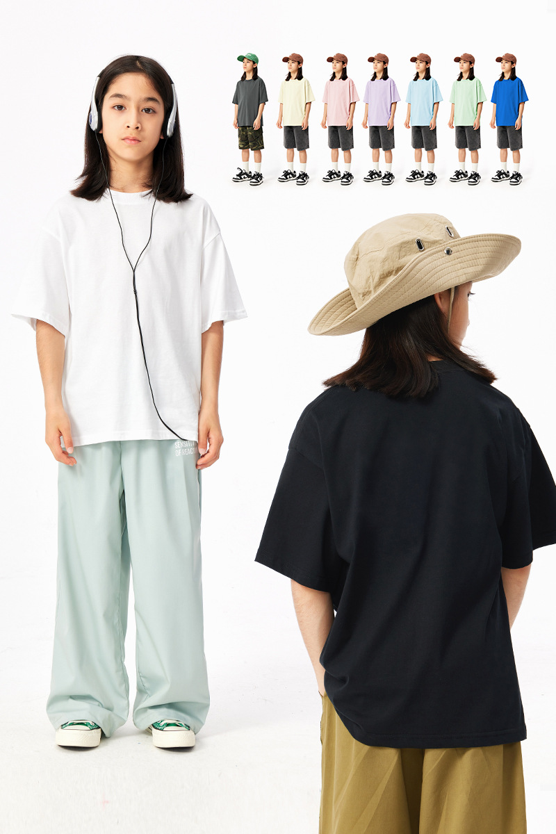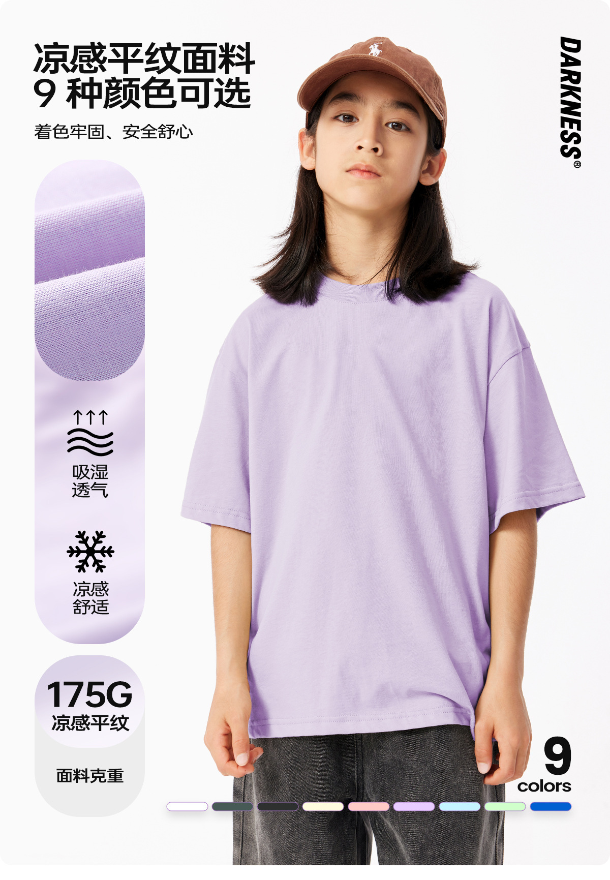 D 아동복 트렌디 브랜드 여름 도파민 솔리드 컬러 소녀 소년 순수 코튼 반팔 티셔츠 중대형 아동 캐주얼상의스토어 가기