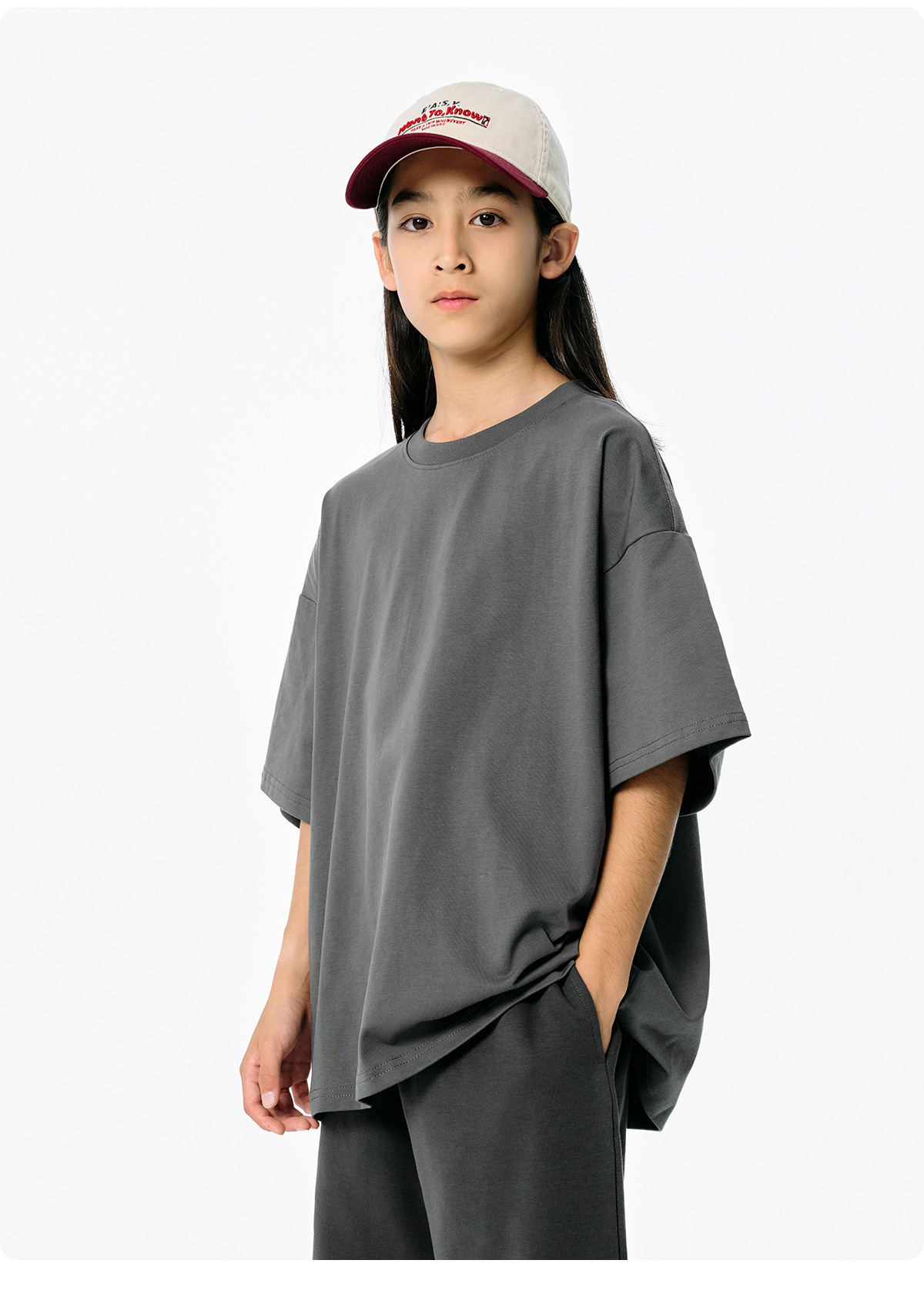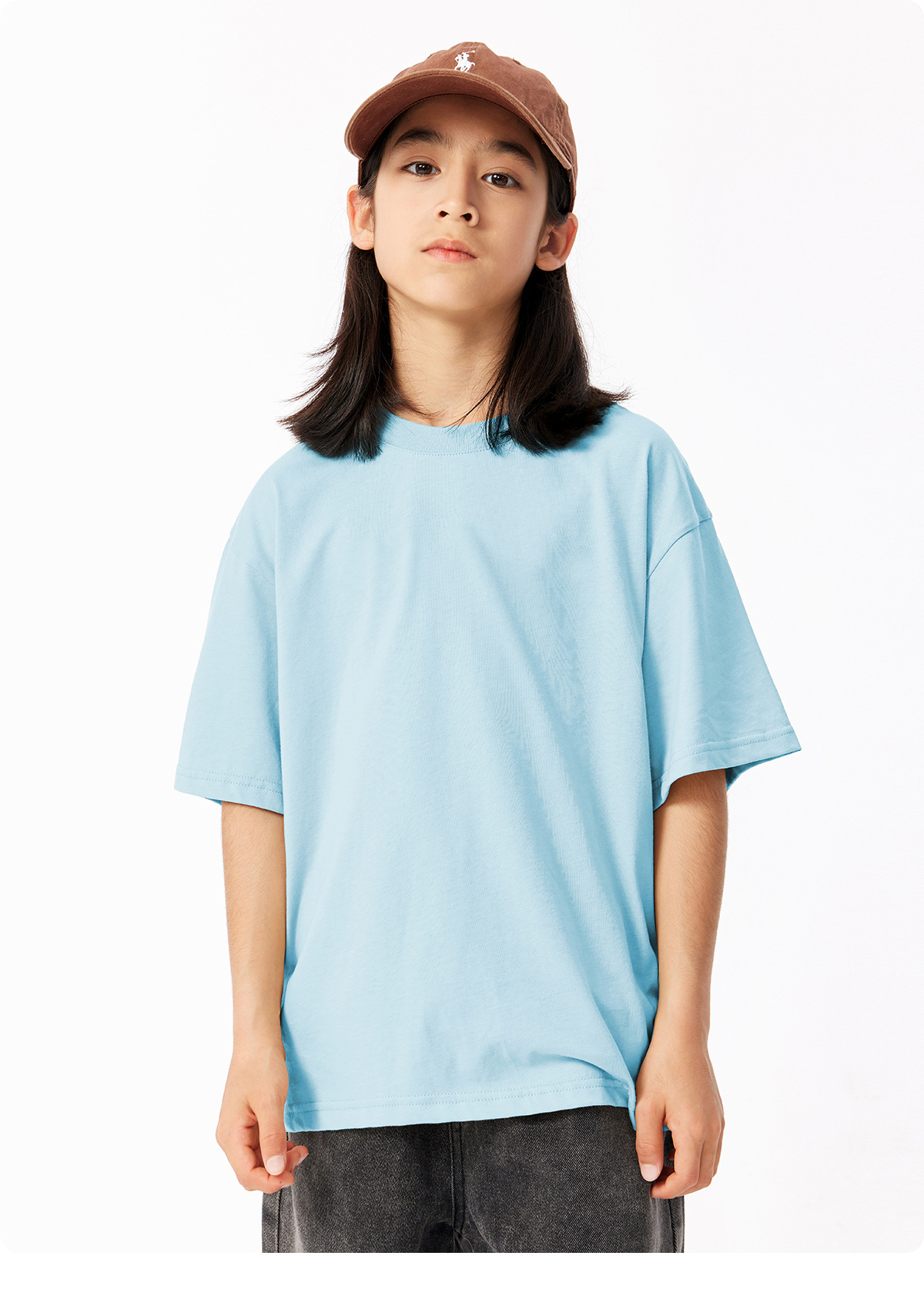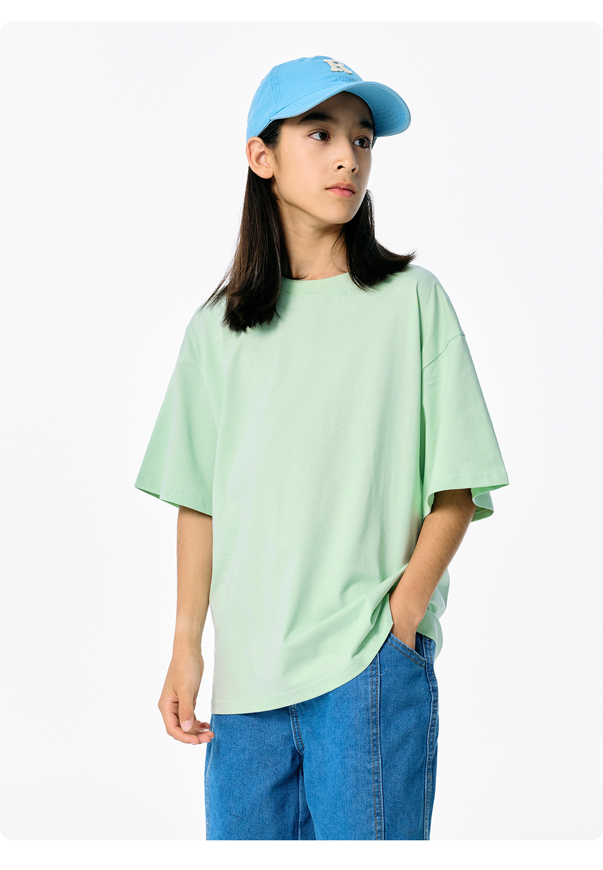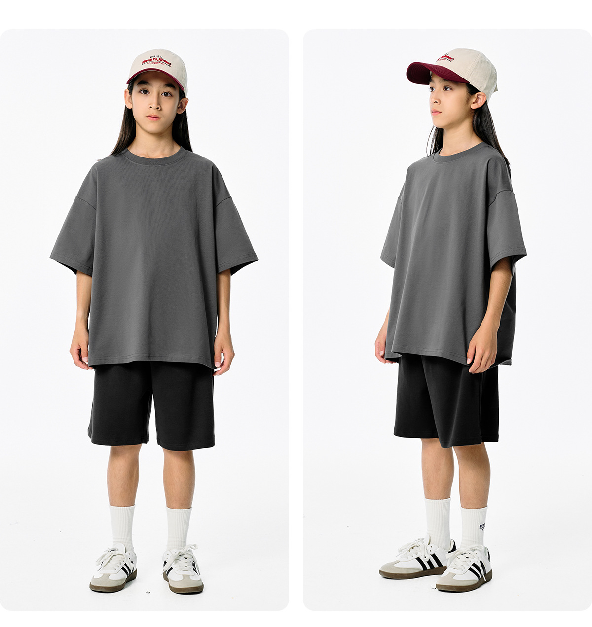 D 아동복 트렌디 브랜드 여름 도파민 솔리드 컬러 소녀 소년 순수 코튼 반팔 티셔츠 중대형 아동 캐주얼상의스토어 가기