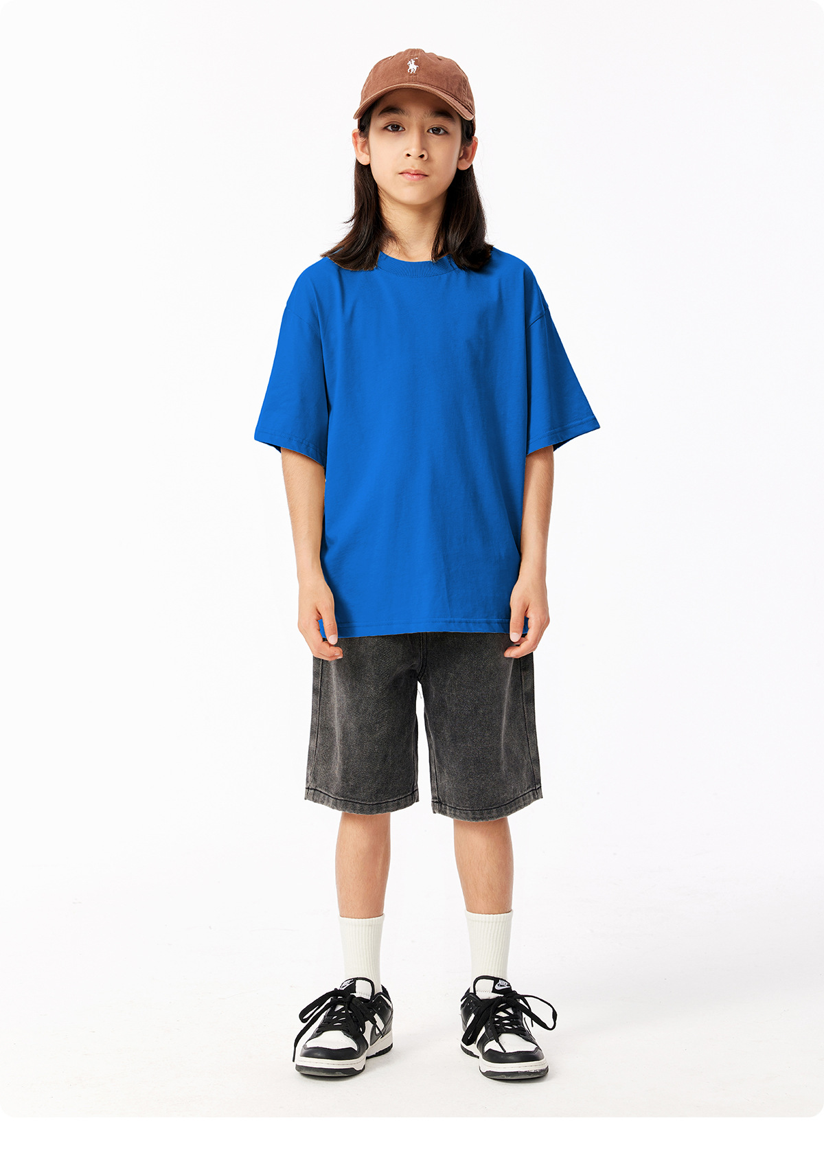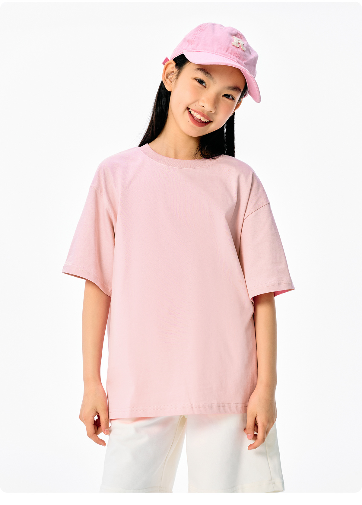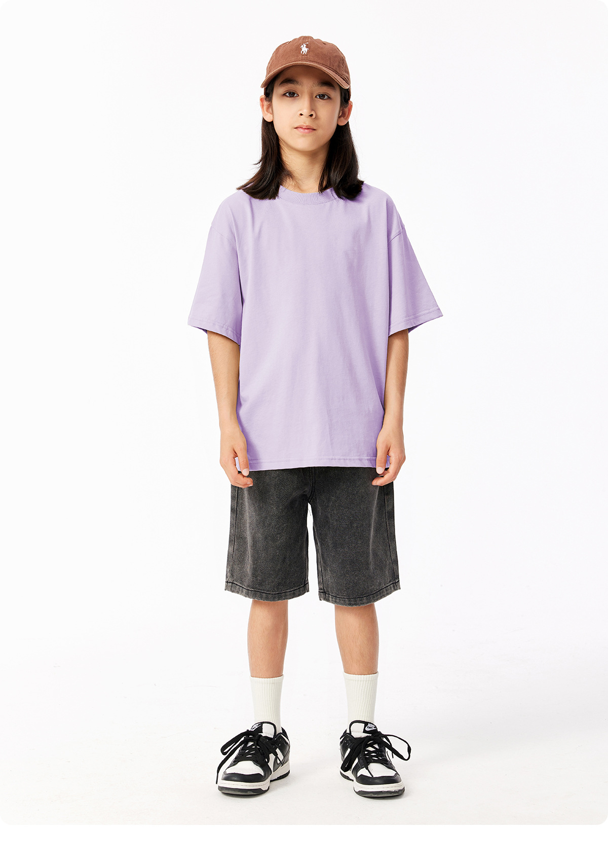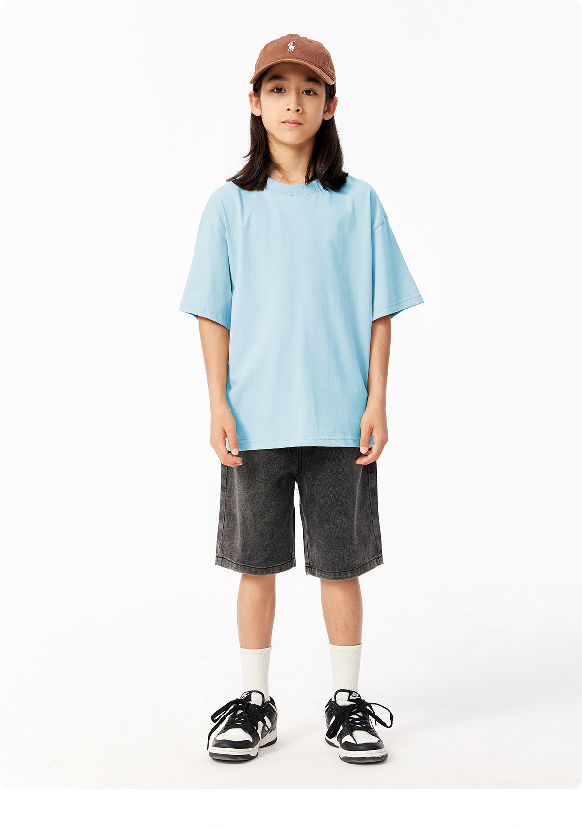 D 아동복 트렌디 브랜드 여름 도파민 솔리드 컬러 소녀 소년 순수 코튼 반팔 티셔츠 중대형 아동 캐주얼상의스토어 가기
