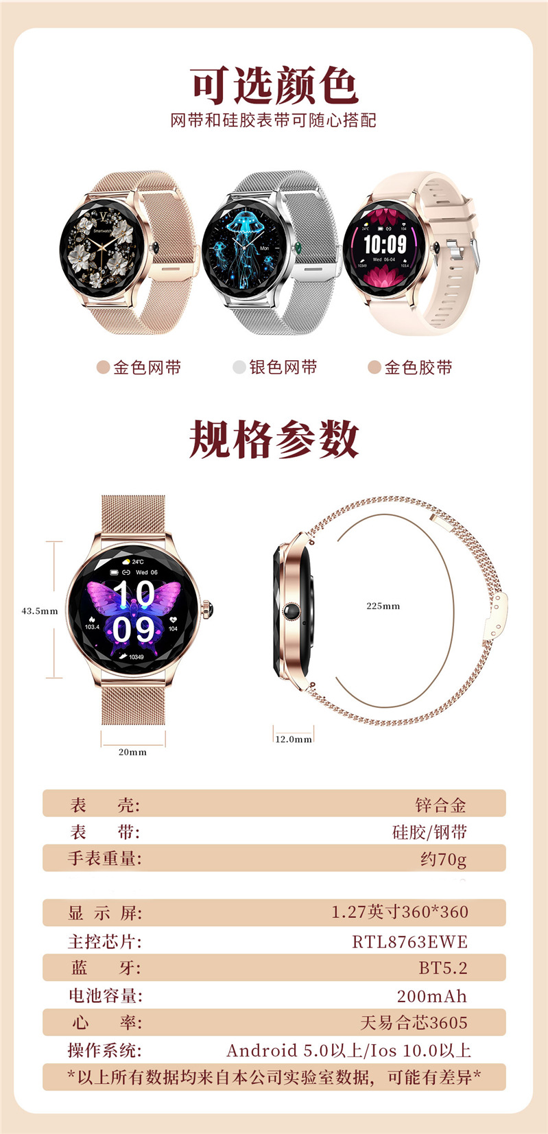 净重 Net Weight (g) | 68g(含不锈钢表带) | 68g(including watchband) |