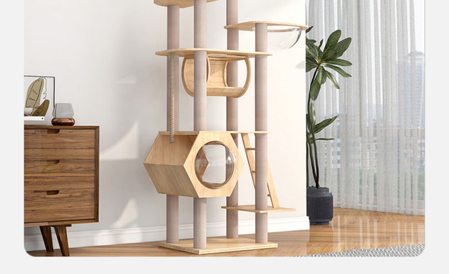 단단한 나무 고양이 등반 랙 고양이 둥지 고양이 나무 통합 대형 럭셔리 고양이 둥지 빌라 공간 캡슐 고양이 잡아 랙은 작은 공간 영역을 커버하지 않습니다