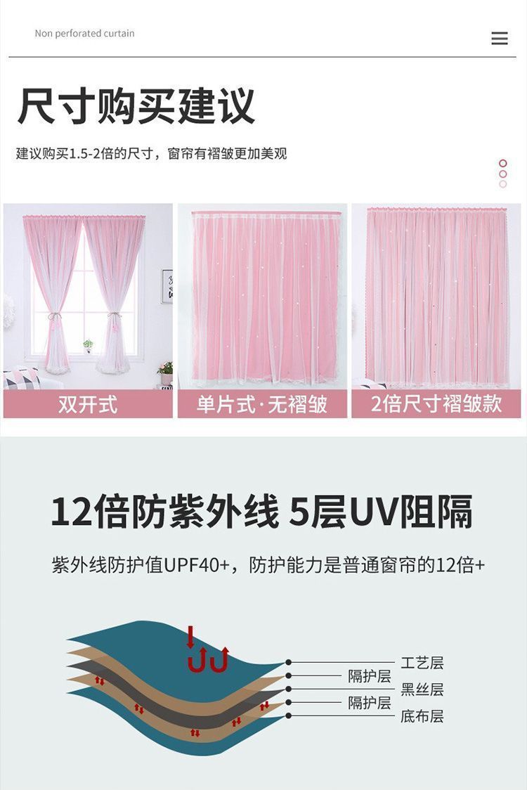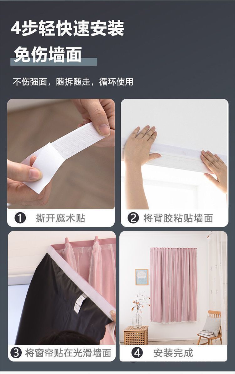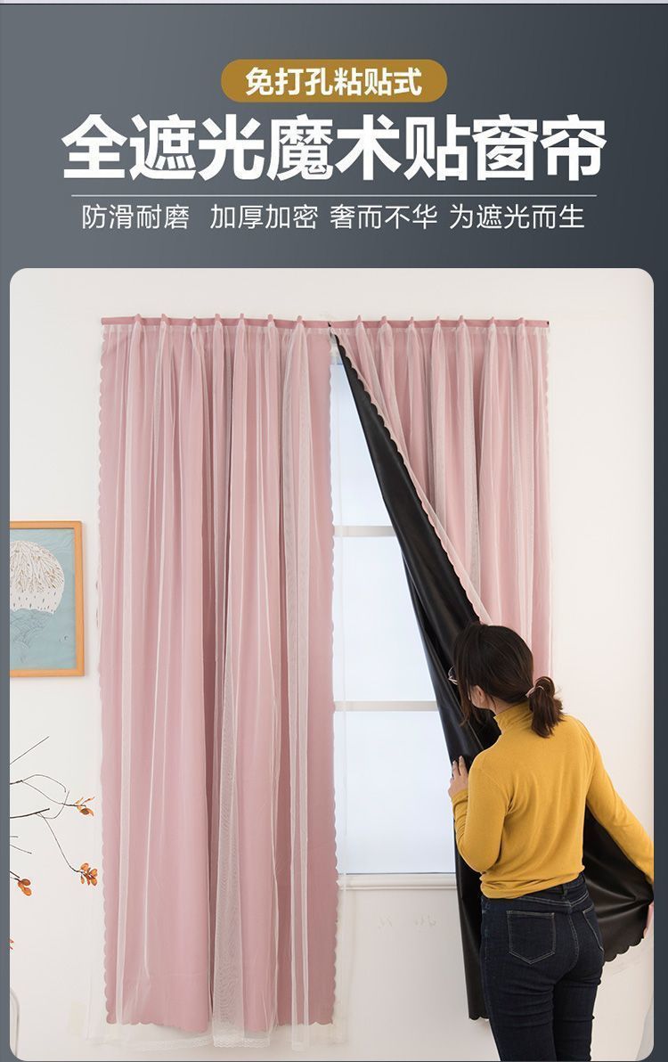 자체 접착식 무타공 커튼 99% 완전 차광 불투명 매직 테이프 임대실용 자외선 차단 재고정리 못 없이 설치 가능한 창문 커튼
