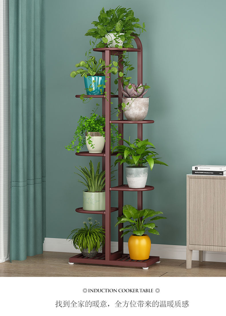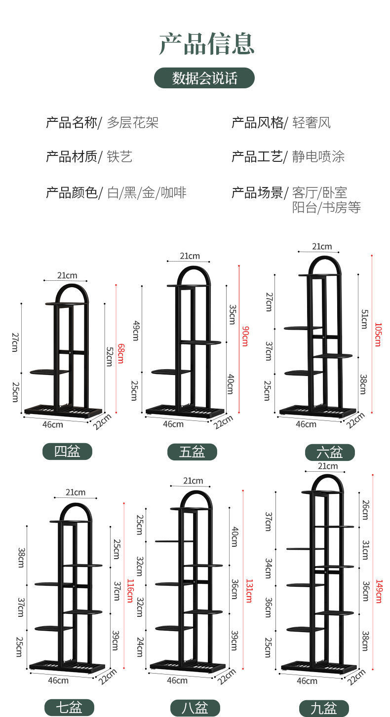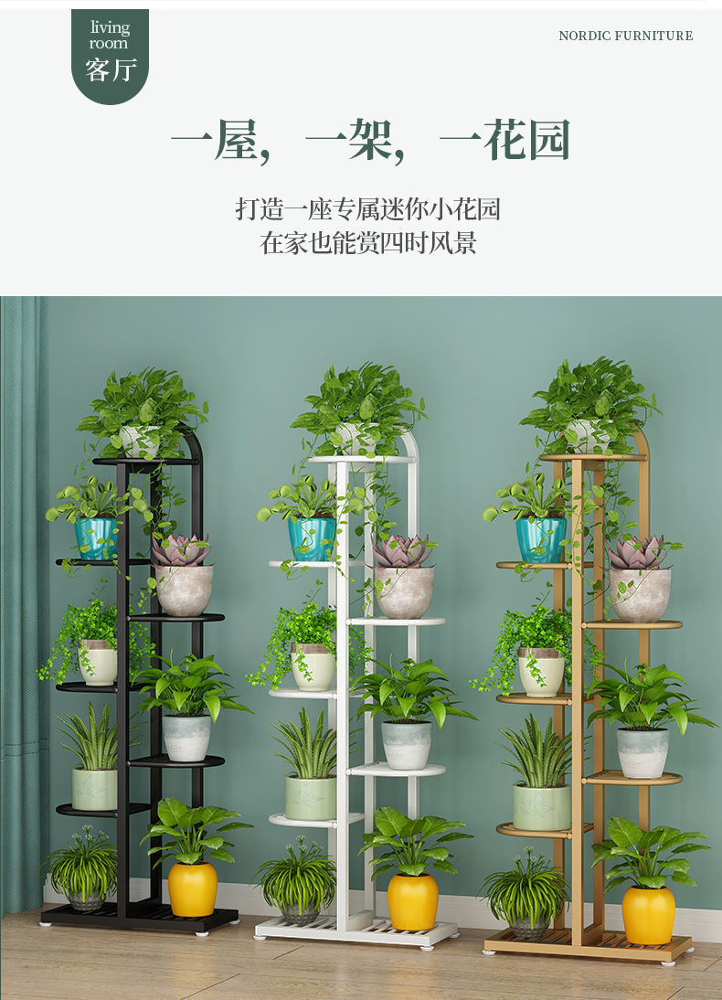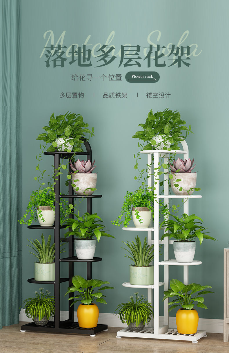 Oqimei 철꽃 스탠드 바닥 서 꽃 냄비 스탠드 다층 공간 절약 실내 및 실외 거실 발코니 녹색 꽃 선반스토어 가기