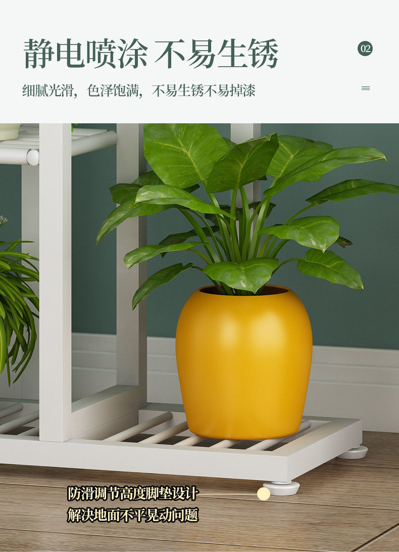 Oqimei 철꽃 스탠드 바닥 서 꽃 냄비 스탠드 다층 공간 절약 실내 및 실외 거실 발코니 녹색 꽃 선반