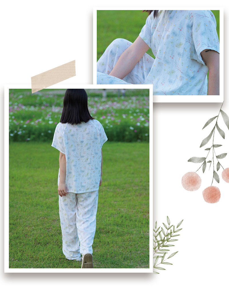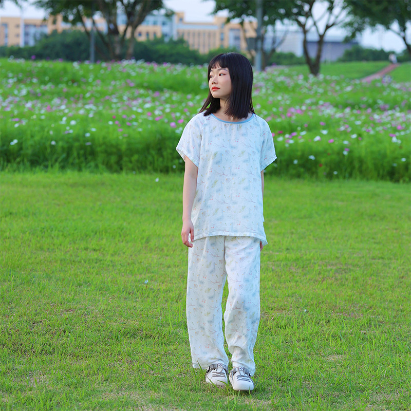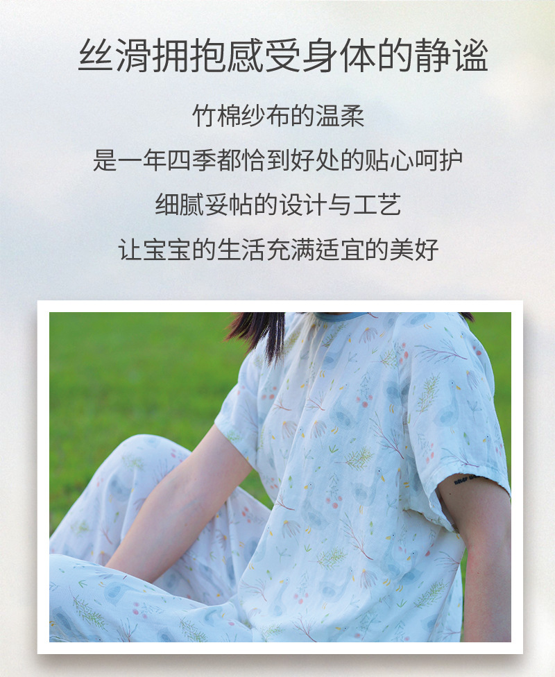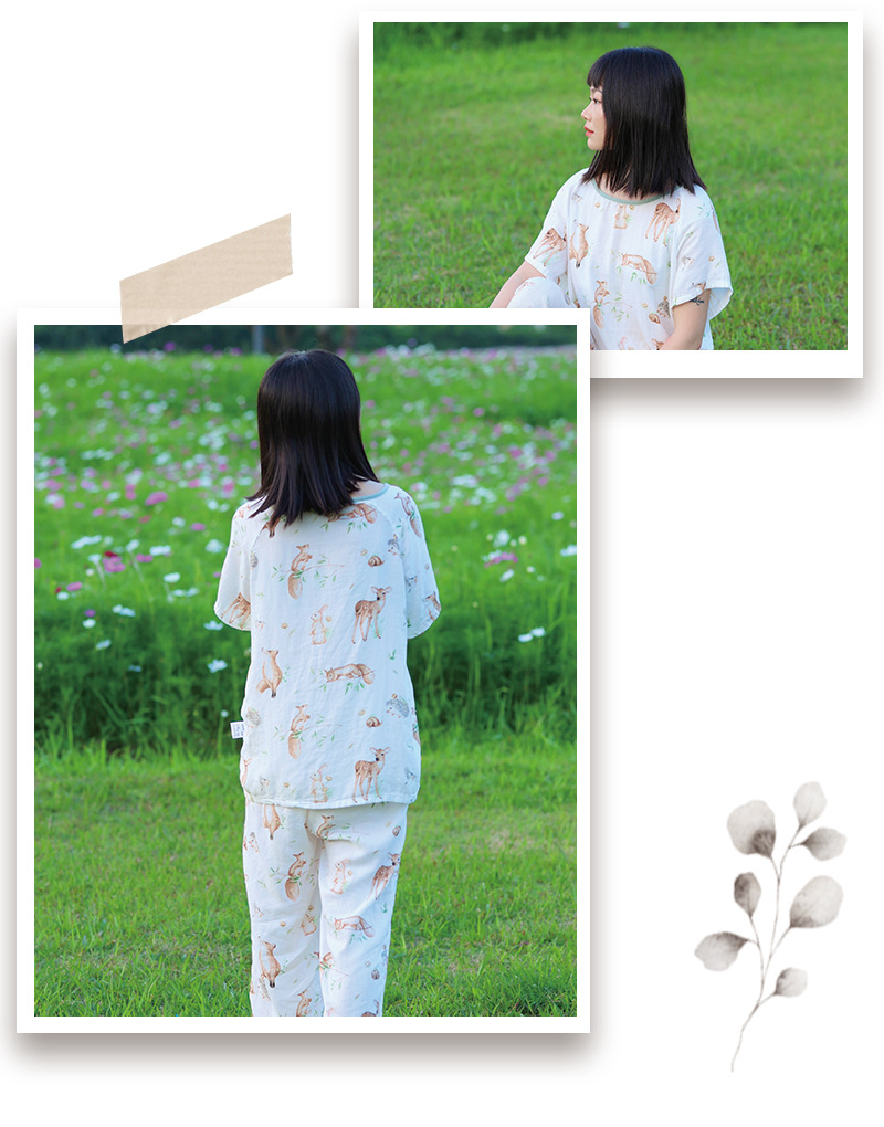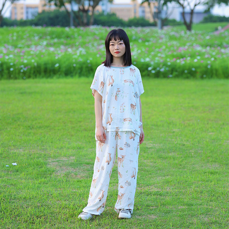 여성용 여름 홈 의류 반팔 바지 에어컨 룸 파자마 더블 레이어 대나무 코튼 거즈 홈 의류 얇은 세트스토어 가기