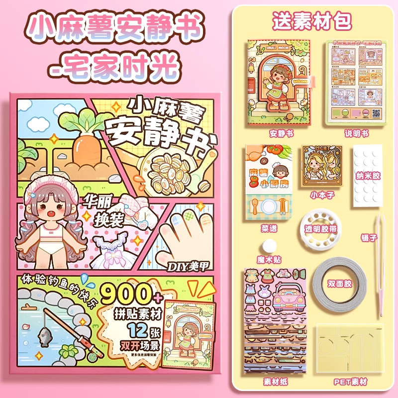 작은 감자 조용한 책 새로운 컷 프리 핸드 계정 팝업 책 DIY 스티커 장식 패턴 어린이 감압 퍼즐스토어 가기