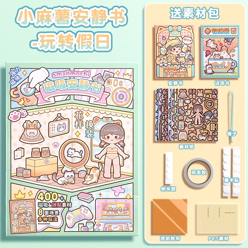 작은 감자 조용한 책 새로운 컷 프리 핸드 계정 팝업 책 DIY 스티커 장식 패턴 어린이 감압 퍼즐