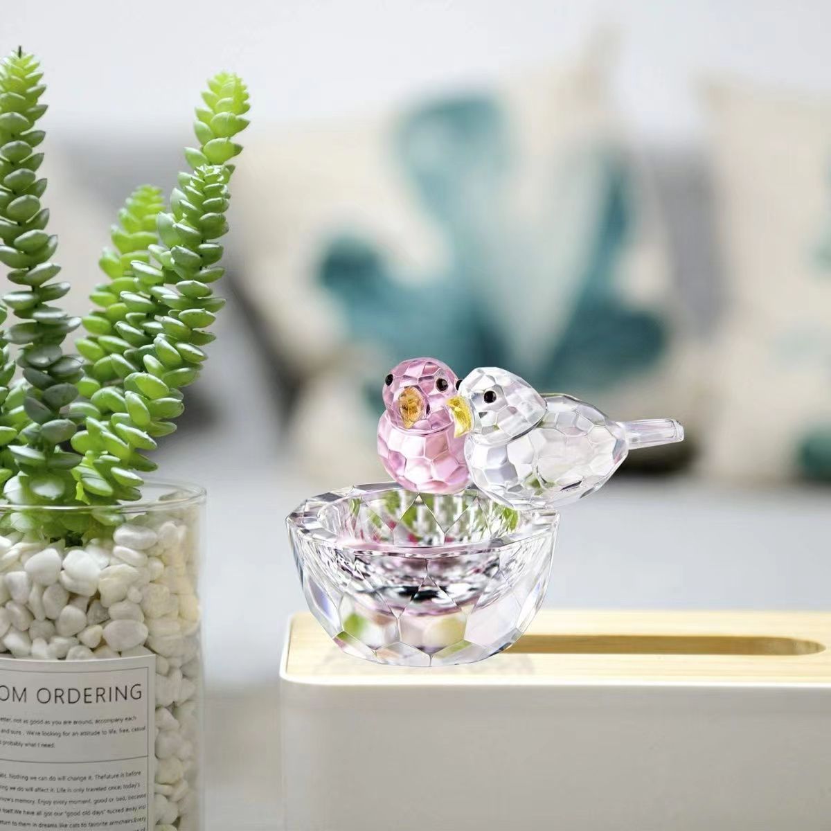 크리스탈 더블 버드 홈 장식품은 가족 조화, 경력 성공을 상징합니다. "비즈니스 집들이 선물 가정 장식