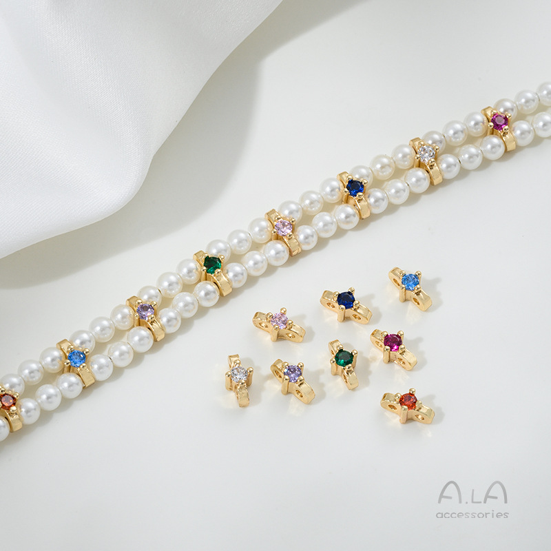 강한 색상 유지 14K 구리 클래드 진짜 골드 컬러 지르코늄 더블 홀 더블 행 구슬 액세서리 diy 문자열 진주 스페이서 보석 소재스토어 가기