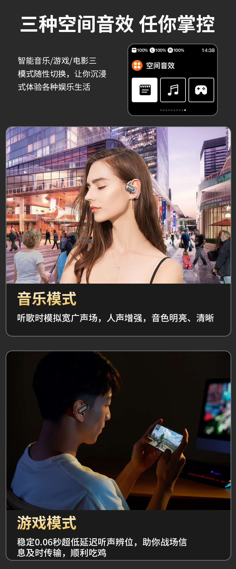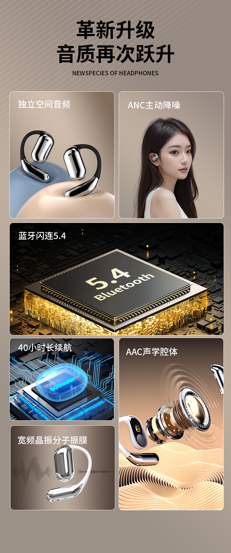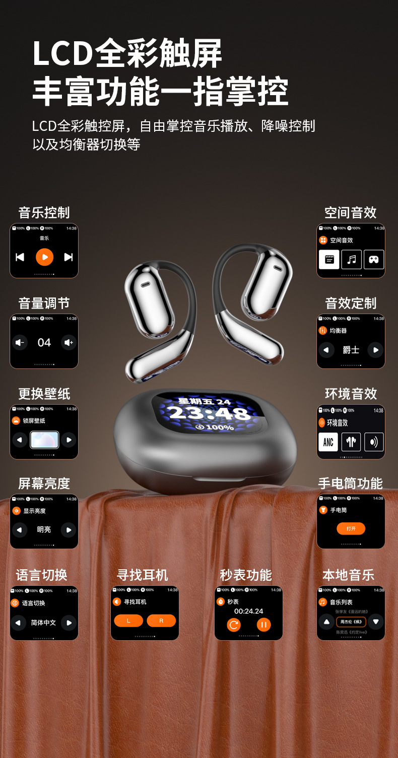 국경 간 새로운 개인 모델 스마트 터치 스크린 오픈 블루투스 헤드셋 OWS 오픈 무선 비 이어 스포츠 헤드셋