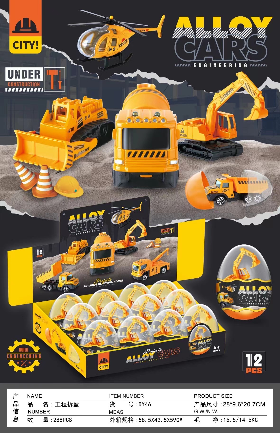 • BY46 엔지니어링 차량 합금 자동차 가샤폰 무작위 1개(디스플레이 상자에 12개)