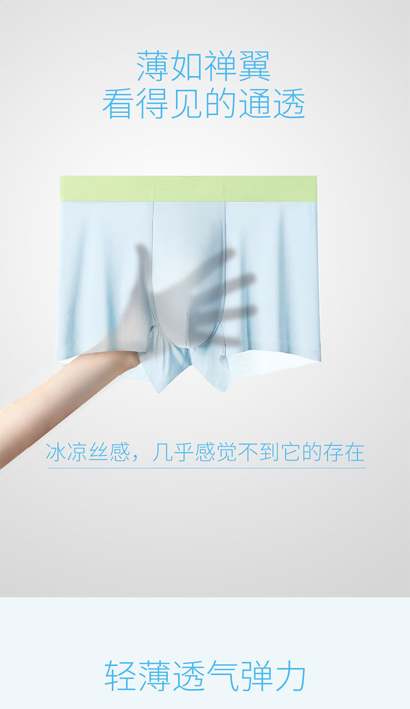 새로운 여름 시원한 느낌 남성 속옷 아이스 실크 원활한 복서 바지 항균면 얇은 통기성 남성 반바지