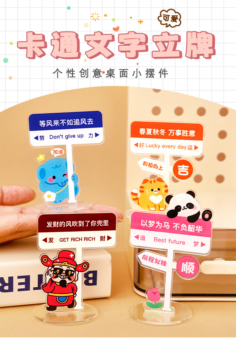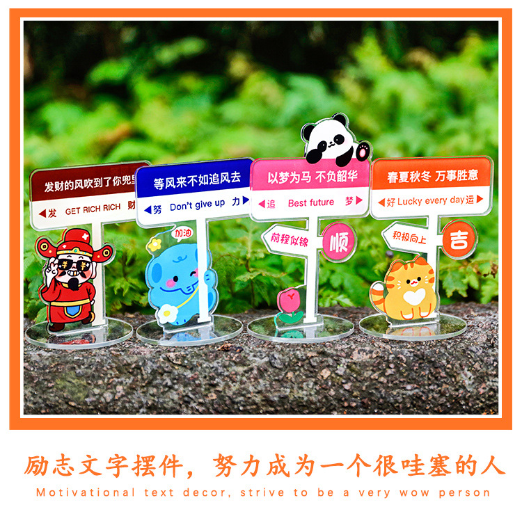 만화 텍스트 브랜드 학생 영감 장식 작은 선물 투명 아크릴 높은 색상 가치 데스크탑 작은 장식품