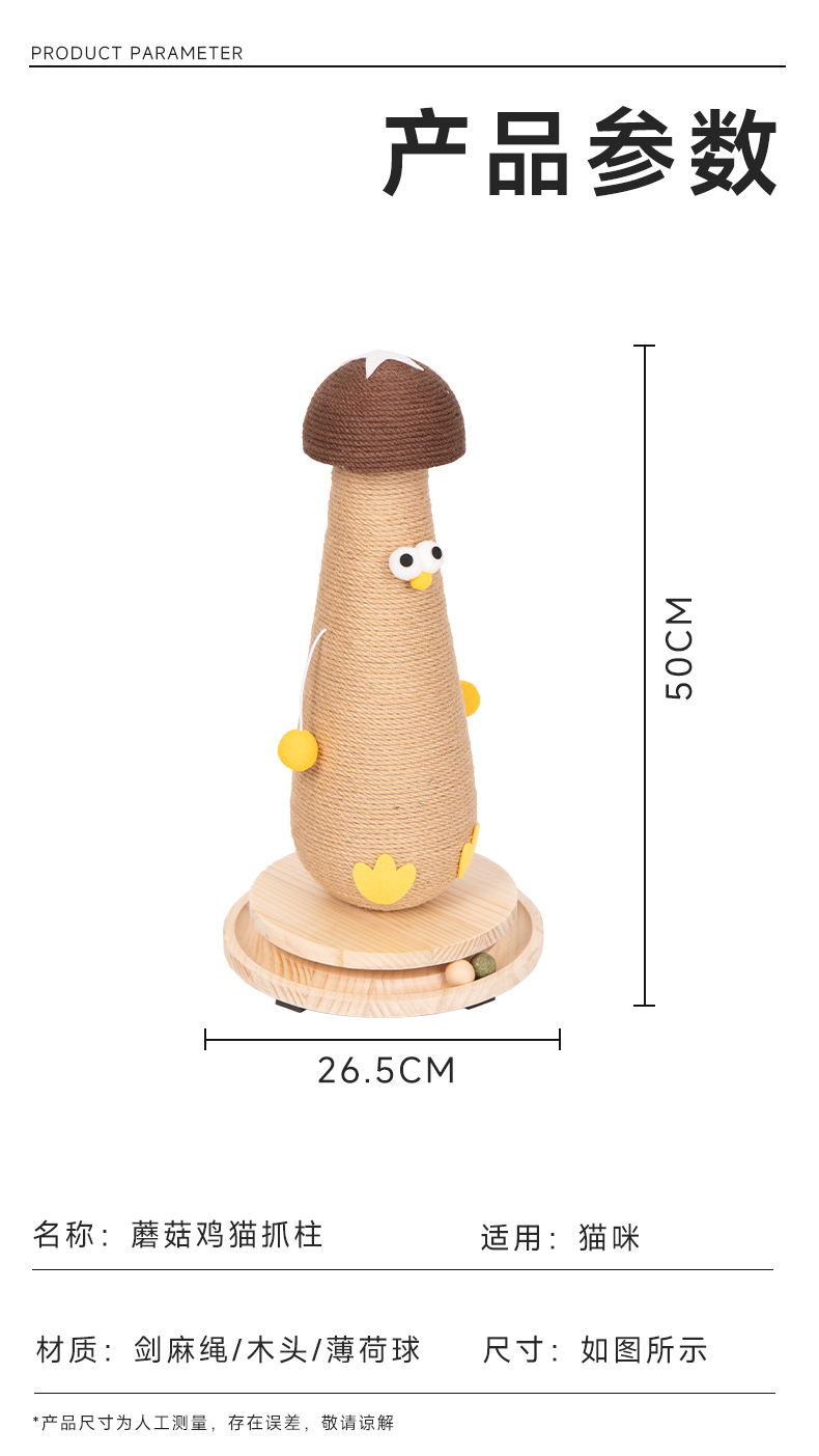 버섯 닭 고양이 스크래치 칼럼 단단한 나무 대마 로프 고양이 등반 프레임 내마모성 고양이 장난감 고양이 스크래치 보드 제조 업체 도매
