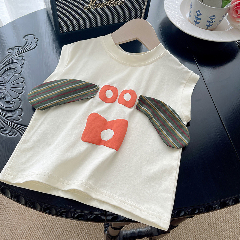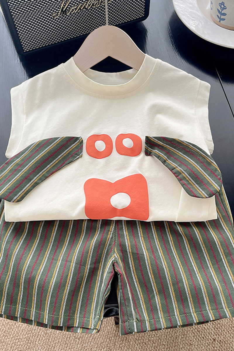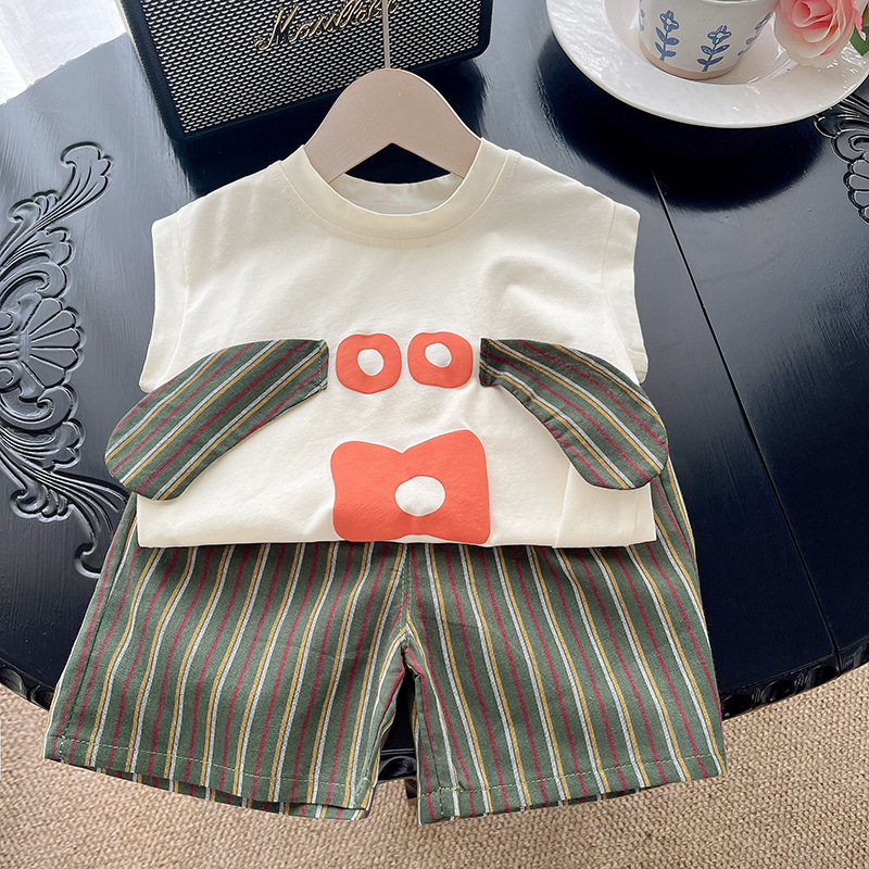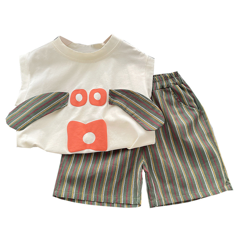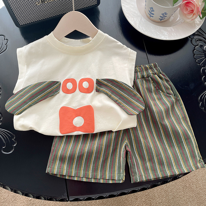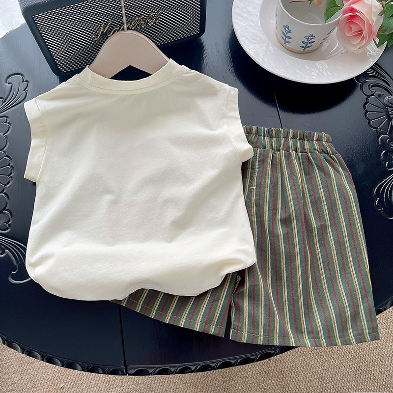 2024 여름 아동복 소년 세트 유행 시원하고 잘 생긴 창조적 인 어린이 거리 튀김 조끼 어린이 줄무늬 반바지 유행스토어 가기