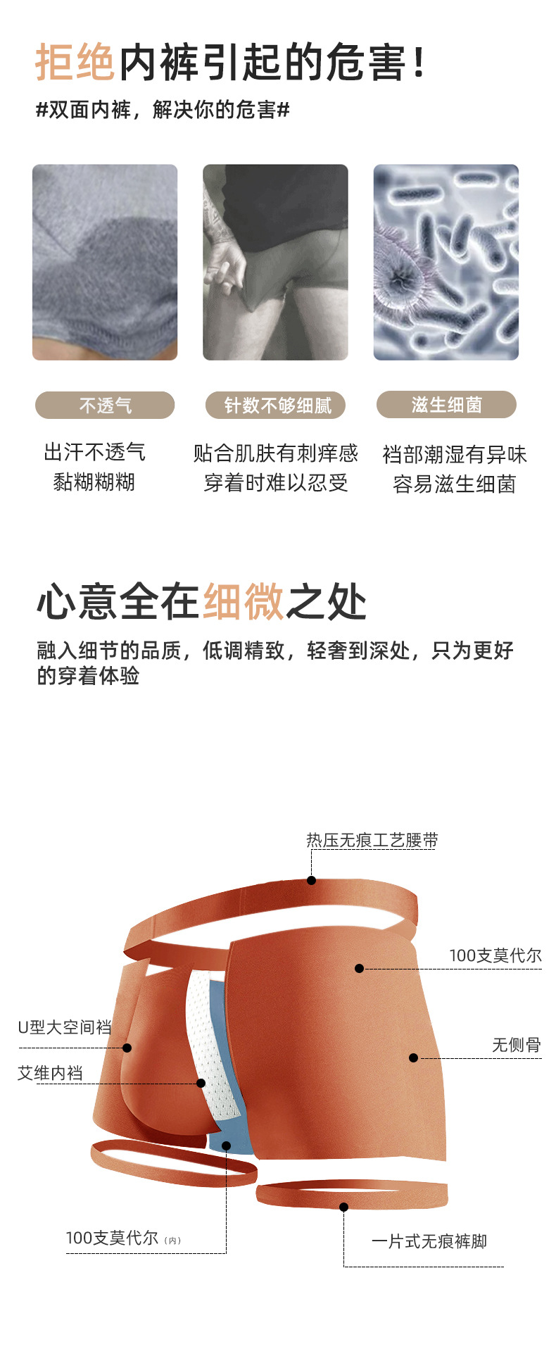남자 속옷 양면 100 Lanjing 0 압력 원활한 통기성 복서 바지 5A 항균 아이비 가랑이 복서 바지스토어 가기