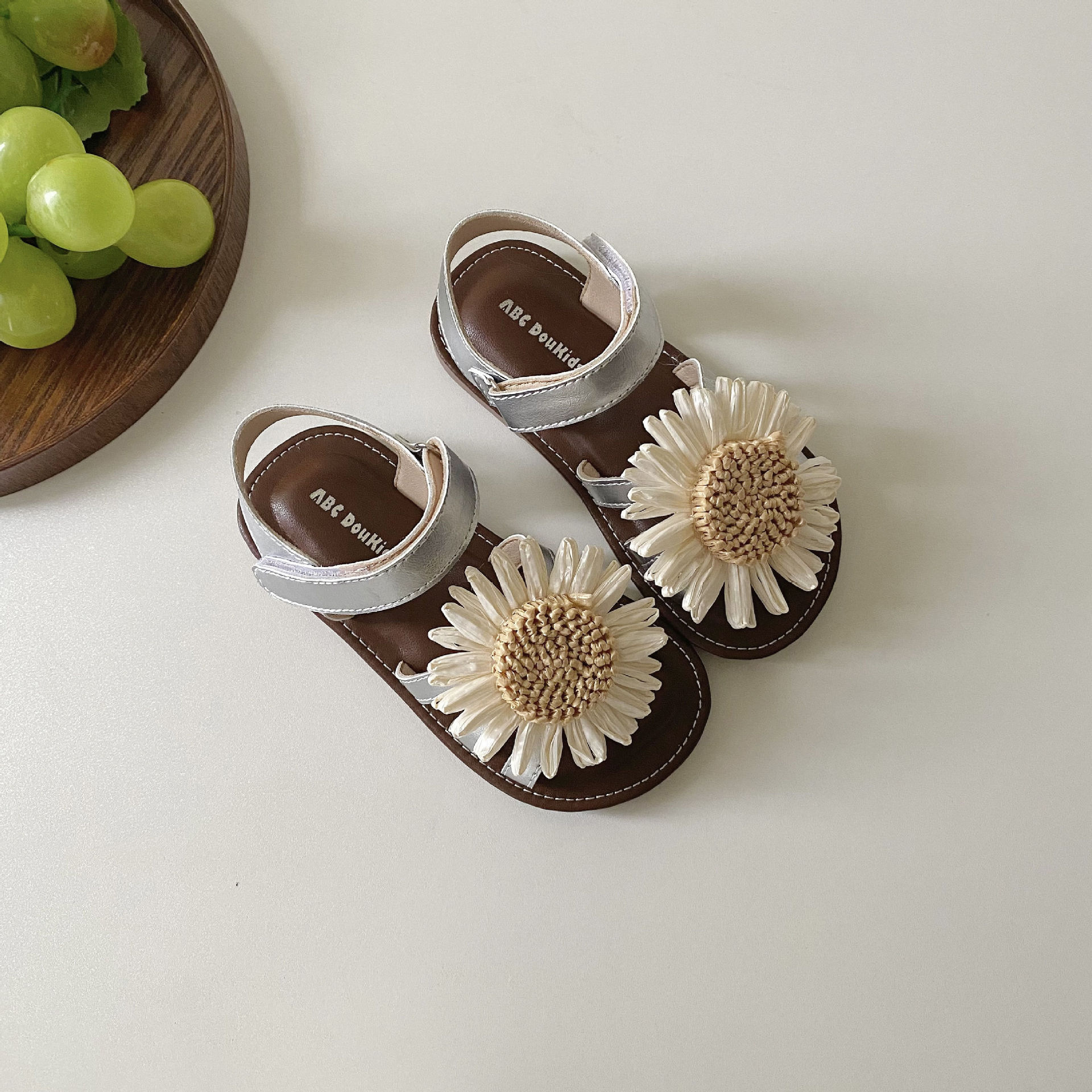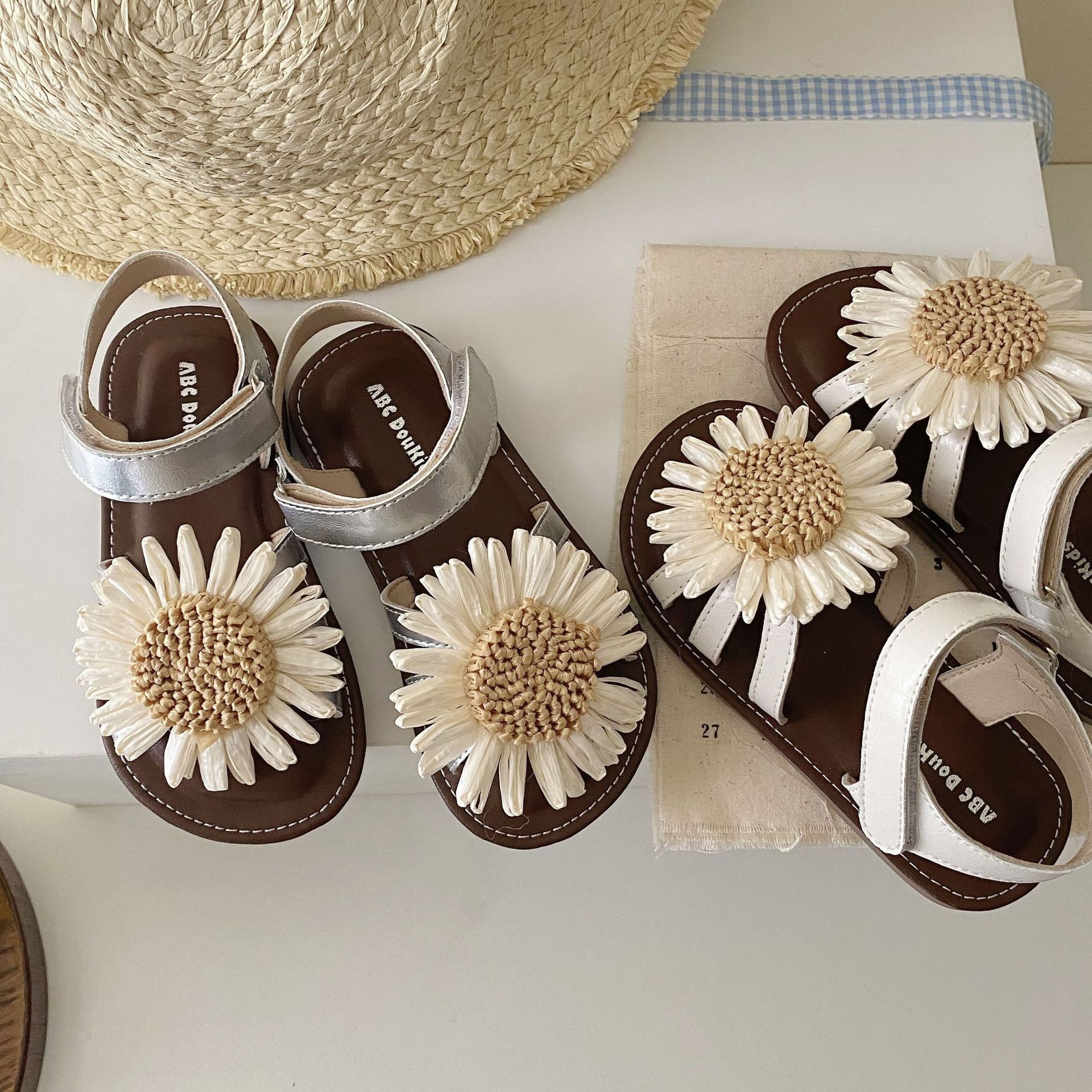 여자 샌들 2025 여름 새로운 어린이 어린 소녀 해바라기 해변 공주 신발 아기 부드러운 바닥 해변 신발스토어 가기