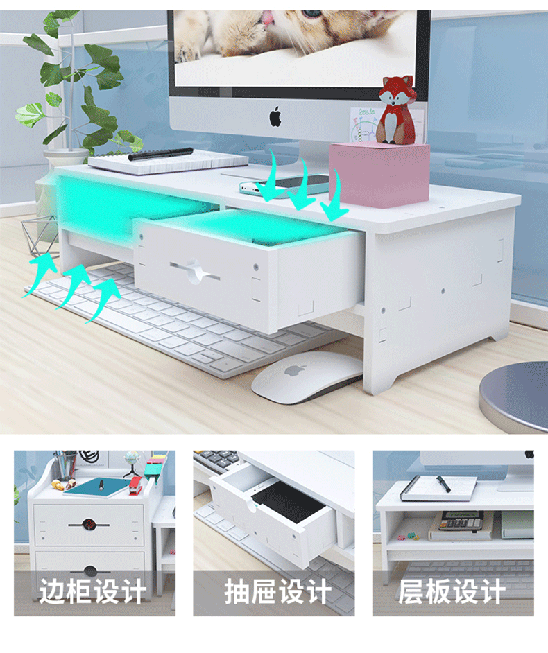 모니터 높은 랙 데스크탑 오피스 노트북 서랍 형 스토리지 베이스 데스크탑 스토리지 랙 컴퓨터 브래킷
