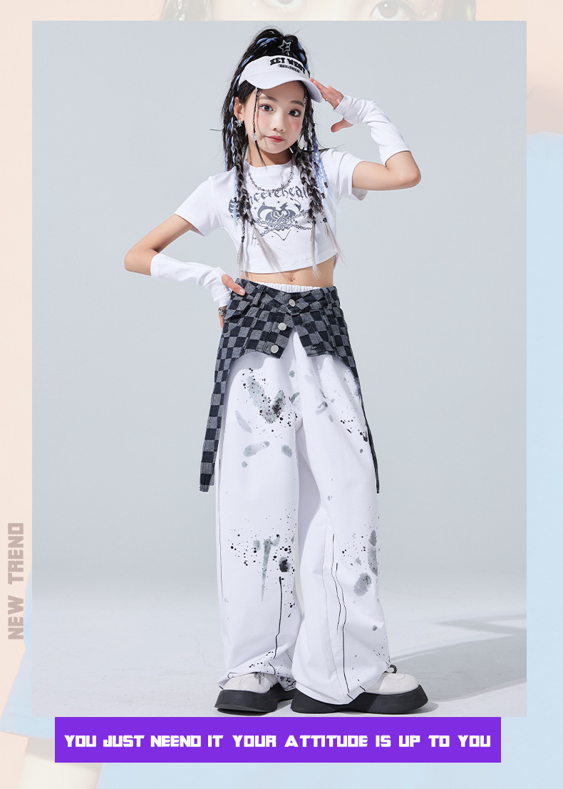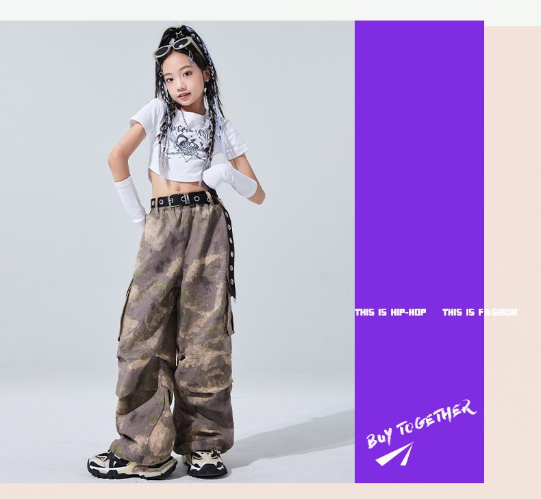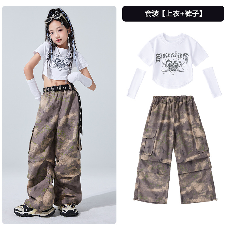 여아 재즈 댄스 의상 힙합 트렌디 의류 어린이 스트리트 댄스 공연복 세트 재즈 아동복 트렌디하고 멋진 옷